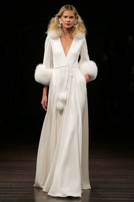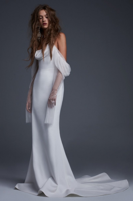 Тенденции ready-to-wear доходят до свадебных линий с опозданием в год, поэтому платья со спущенными рукавами, какими сейчас пестрит масс-маркет, в свадебный трендбук попадут только через год. Но если вам не невтерпеж появиться перед алтарем в шелковом платье с длинными спущенными с плеч прозрачными рукавами — бегите к швее со свежим лукбуком Веры Вонг прямо сейчас.