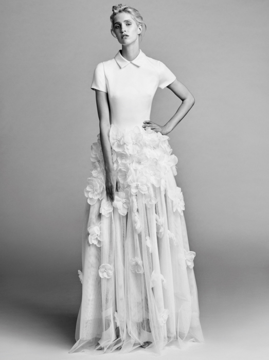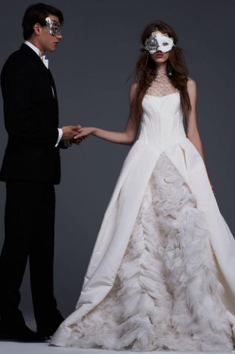 Напомним, два года назад Виктор Хорстинг и Рольф Лорен отказались от pret-a-porte линейки и с тех пор презентуют только кутюр и свадебную коллекцию. В этом сезоне дизайнеры угодили всем: в коллекции, презентованной на Bridal Fahion Week, есть и хрестоматийные наряды (правда набившие оскомину корсеты здесь заменены бантами и тонкими бретелями), и новаторские идеи — например, платье-рубашка силуэта 1960-х годов и наряд с позаимствованным у рубашки-поло верхом.