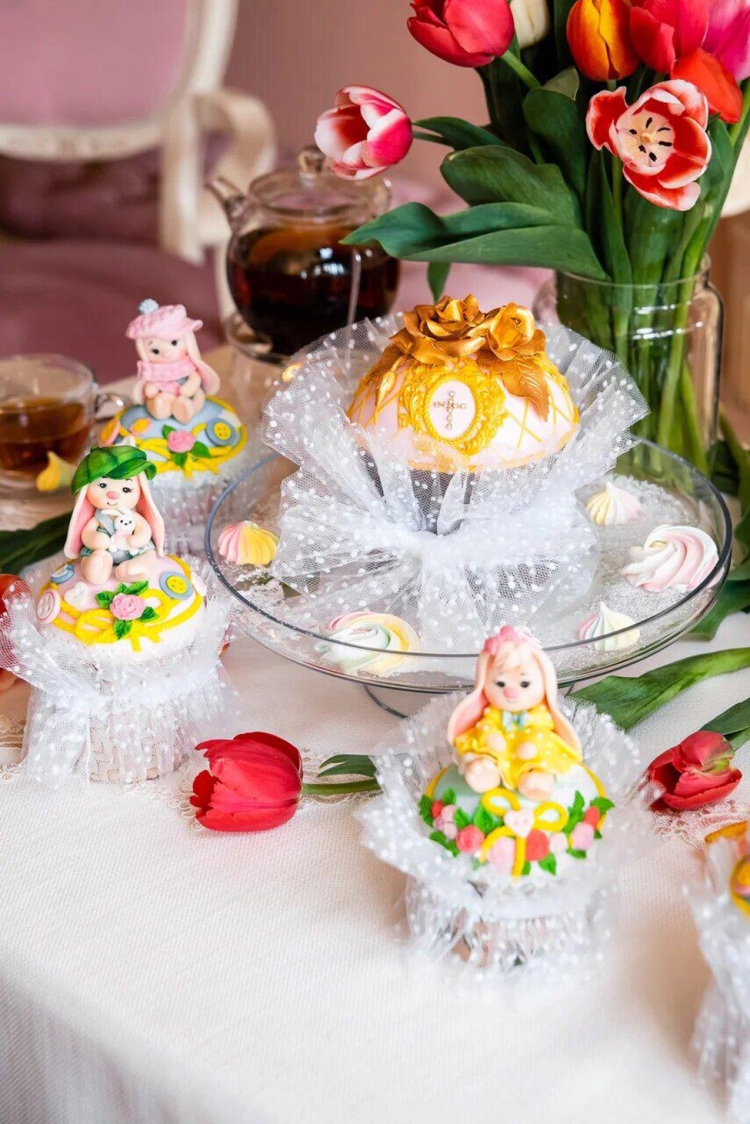 Особое внимание кондитеры кафе уделяют оформлению десертов, и это прослеживается даже в пасхальных куличах.