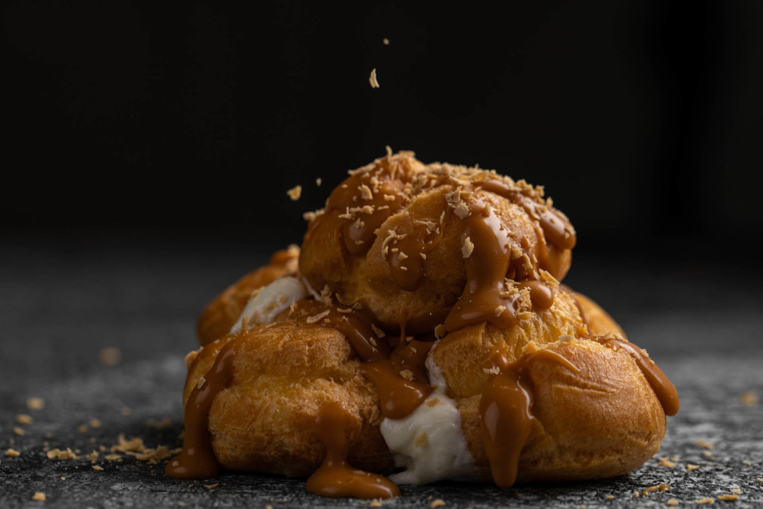 К примеру, для профитролей заварное тесто наполняют кремом на основе маскарпоне, добавляют шоколад и соленую карамель.