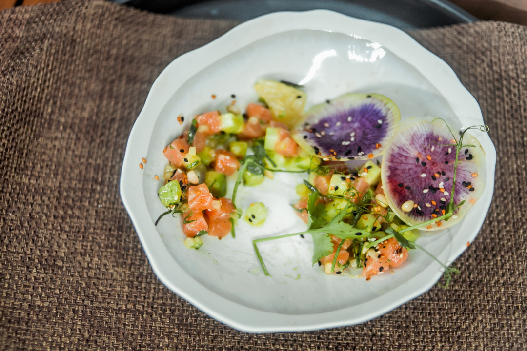 Специально для кухни ресторана выращивают спаржу, все виды кресс-салатов, рукколу, розмарин, тимьян и даже молодые цветы цукини, а ароматные лимоны привозят прямо из Абхазии. «Фишка» производства – готовить с нуля абсолютно все, даже хлеб. Хинкали с артишоками, белыми грибами и листьями шпината, хинкали с креветками, кальмаром и сыром страчателла ломают самые устоявшиеся вкусовые стереотипы, салат из рукколы, дикого щавеля, мацони, хрена и сезонных ягод с бобами запоминается ярким, ни на что не похожим вкусом, а плов с бараниной, нутом и моченым изюмом вмещает в себя всю аутентичность кавказской кухни.