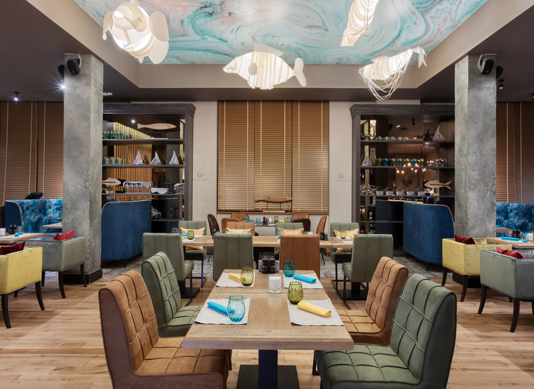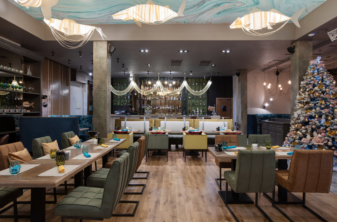Пространство ресторана теперь тематически разделено на два этажа: первый стал повседневным, второй – событийным. На первом этаже, который изменился больше, много света и непринужденная атмосфера, контактная барная стойка и карта напитков с «честными ценами»: минимальная наценка на игристые и коктейли – новая политика заведения. За них здесь отвечают, без преувеличения, настоящие звезды индустрии: Мария Сюкрина собрала краткую и понятную карту игристых напитков с идеальным соотношением цены и качества, а Женя Нерубенко создал серию коктейлей на основе местных фруктов и трав.