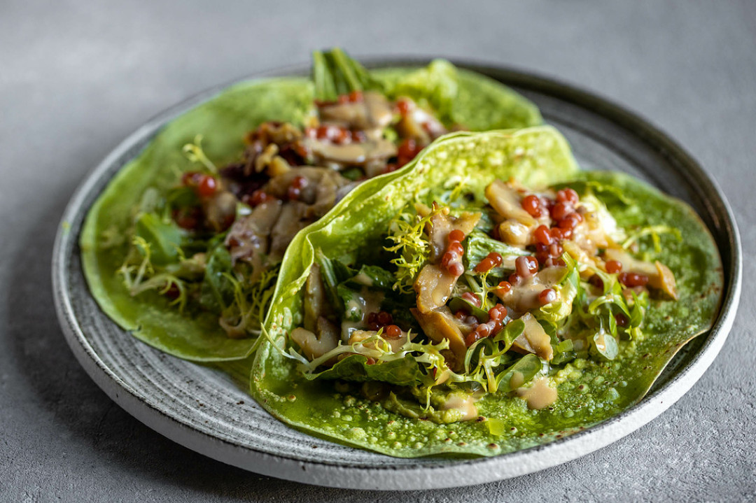 Крем-суп из жареной петрушки с куриным кебабом, жареный адыгейский сыр с пряным соусом из томатов и зелени и три вида еки, традиционной кавказской закуски из лаваша – с лососем, крабом, а также сыром и зеленью – каждое блюдо создано с оглядкой на местный колорит. 180 граммов чистейшего нежного крабового мяса, обжаренного в wok, дополненного пикантным соусом, сочным тропическим плодом, ароматными кедровыми орехами и долькой лимона. Кисло-острый китайский суп – легкий бульон, черный рисовый уксус, нежные древесные грибы кикурагэ, сочный маринованный бамбук, тофу, немного свежего чили и ароматной кинзы. Суп умеренно острый, улучшает пищеварение, поэтому часто подается в конце трапезы, но может быть и самостоятельным блюдом.
