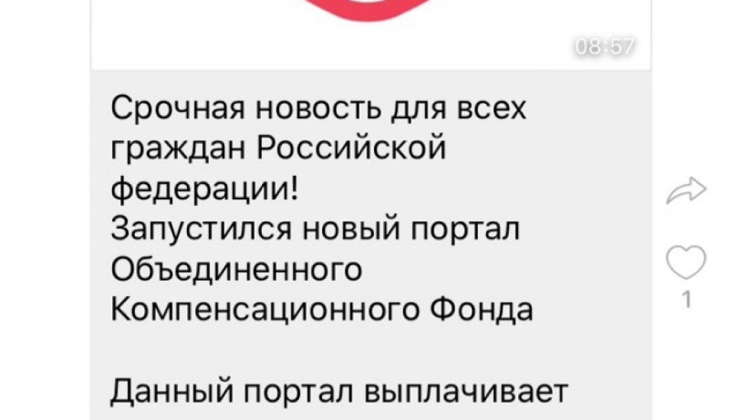 Для этого, указывают злоумышленники, следует пройти по ссылке и зарегистрироваться на некоем сайте, после чего на счет поступит компенсация.