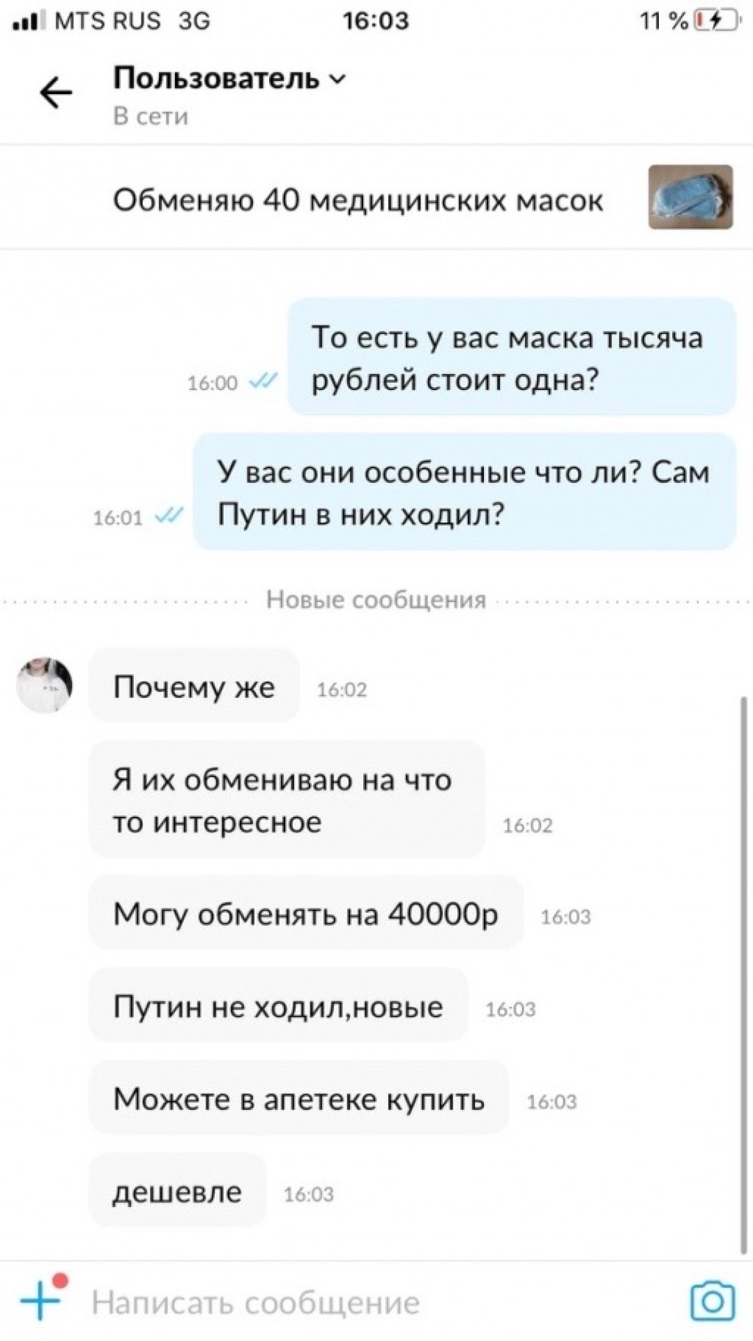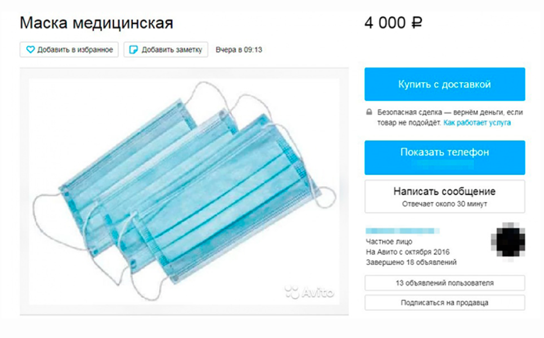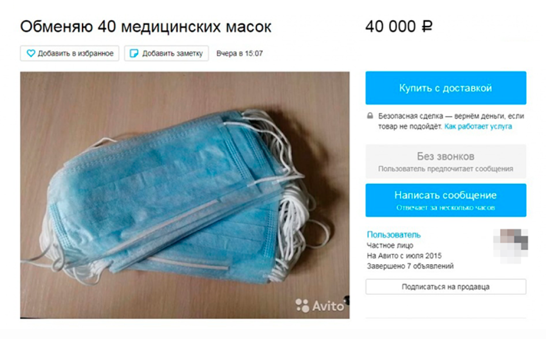 19-летний продавец в Уфе разместил объявление с предложением обменять 40 медицинских масок на 40 тысяч рублей либо на элитный гаджет.