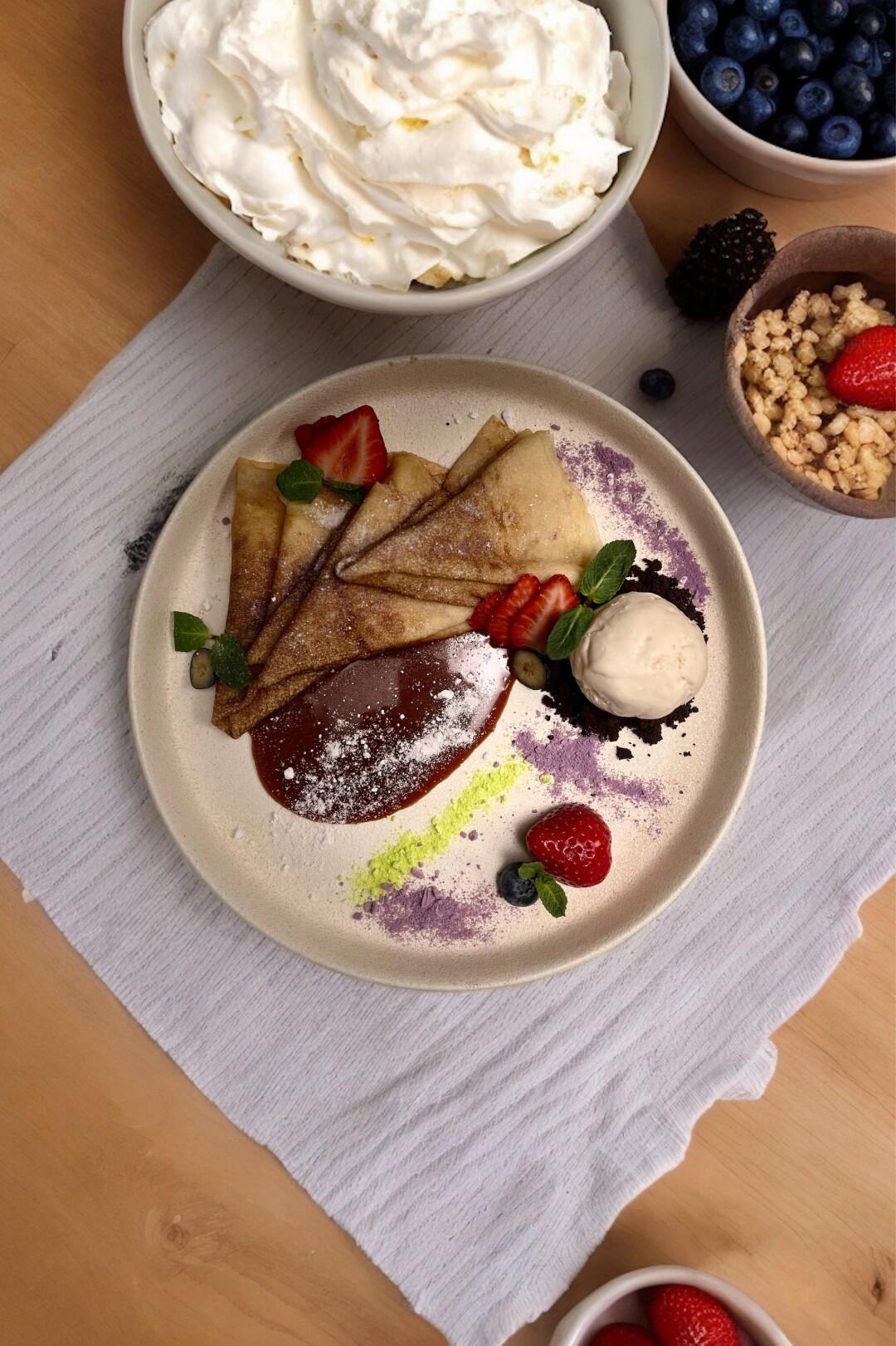 - панкейк с мороженным и ягодами