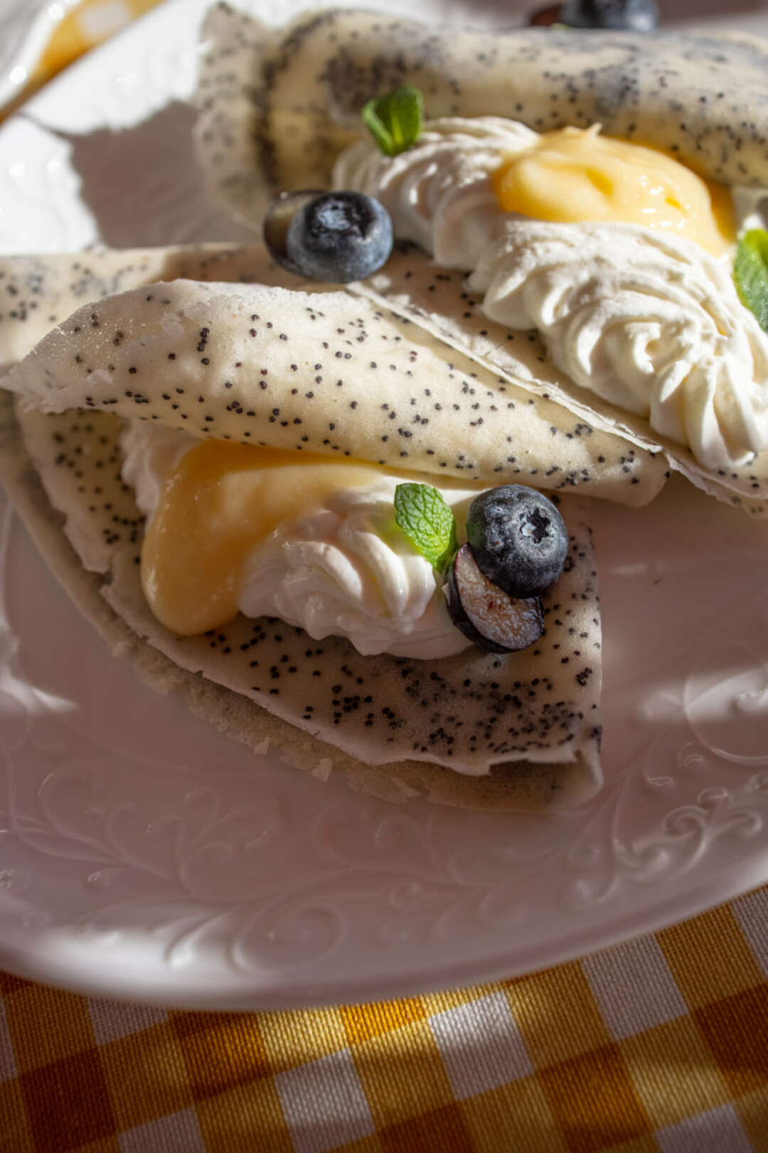 - блины из черной смородины с лимонно-лаймовым заварным кремом и смородиной конфи