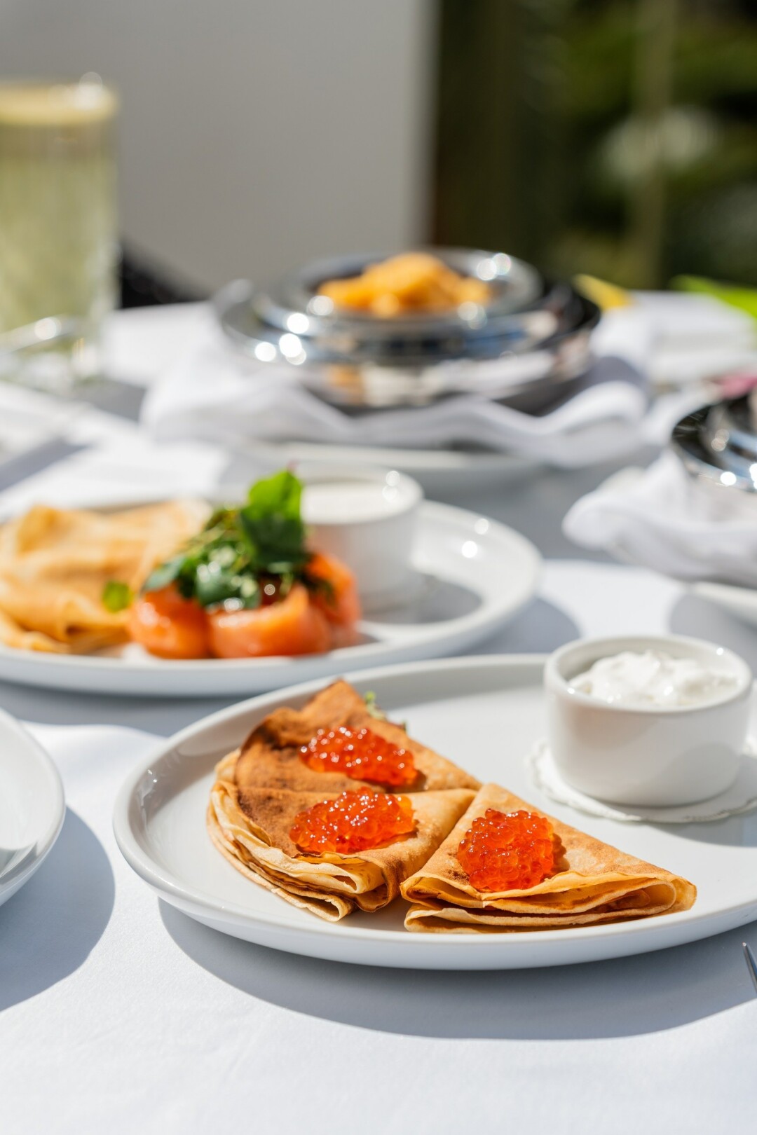 - блинчики с красной икрой и сметаной