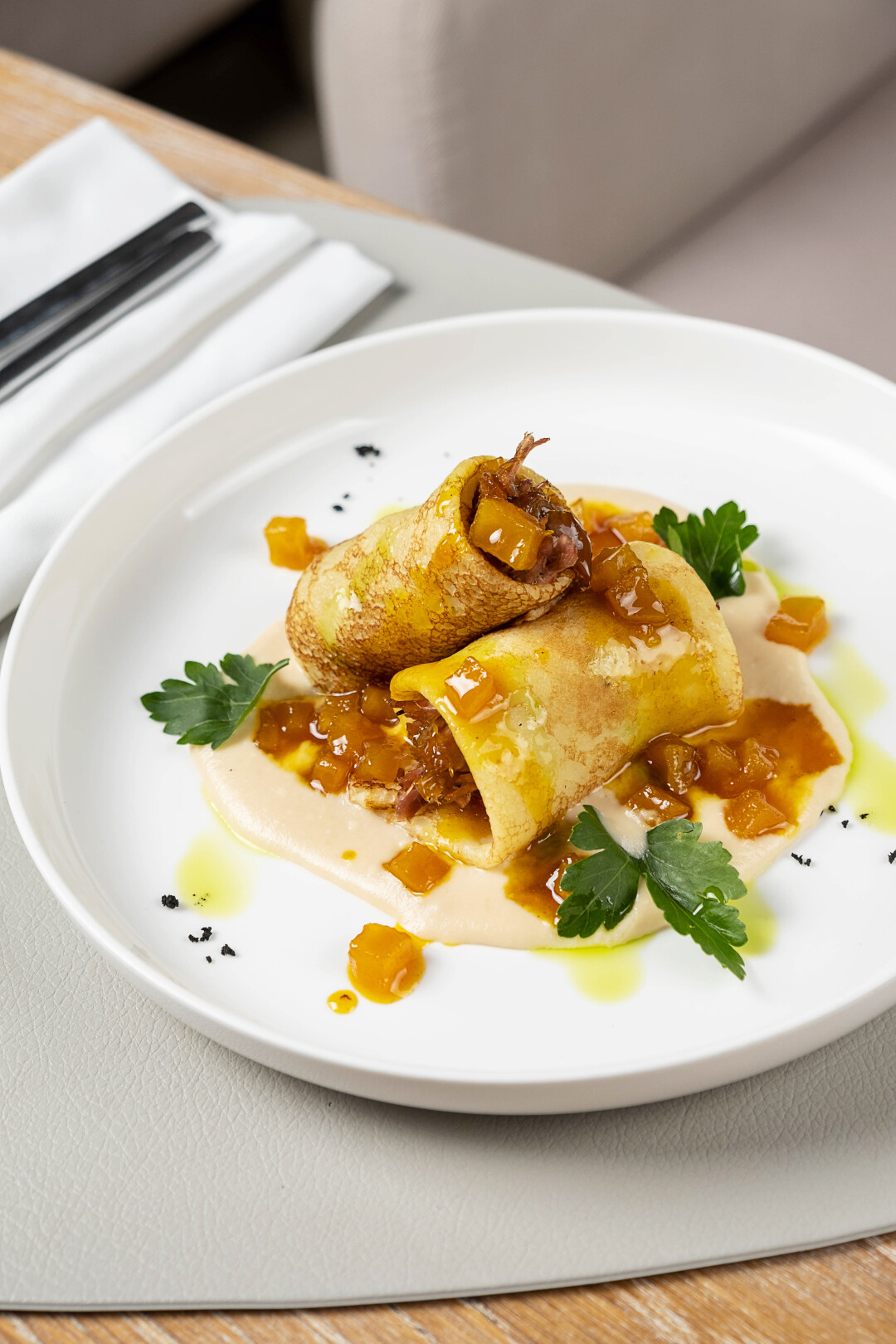 Шеф-повар ресторана «БАРАН-РАПАН» Андрей Грязев подготовил специальное меню для масленичной недели в Сочи. Помимо классических, гречневых и свекольных блинов с риетом из черноморской рыбы, слабосоленым лососем с крем-чизом, мясом краба с томатами и сливочным кремом и другими начинками, в меню предусмотрены необычные блинные изыски: