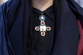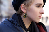 На Марии: пальто и сумка Greatcriss, берет — винтаж, шарф American Apparel, брюки сделаны из пиджака, рубашка JNBY, ботинки Dr. Martens, серьги и подвеска  Елена Камаева, кольцо-монета сделала сама, кольцо-крест  подарок.
