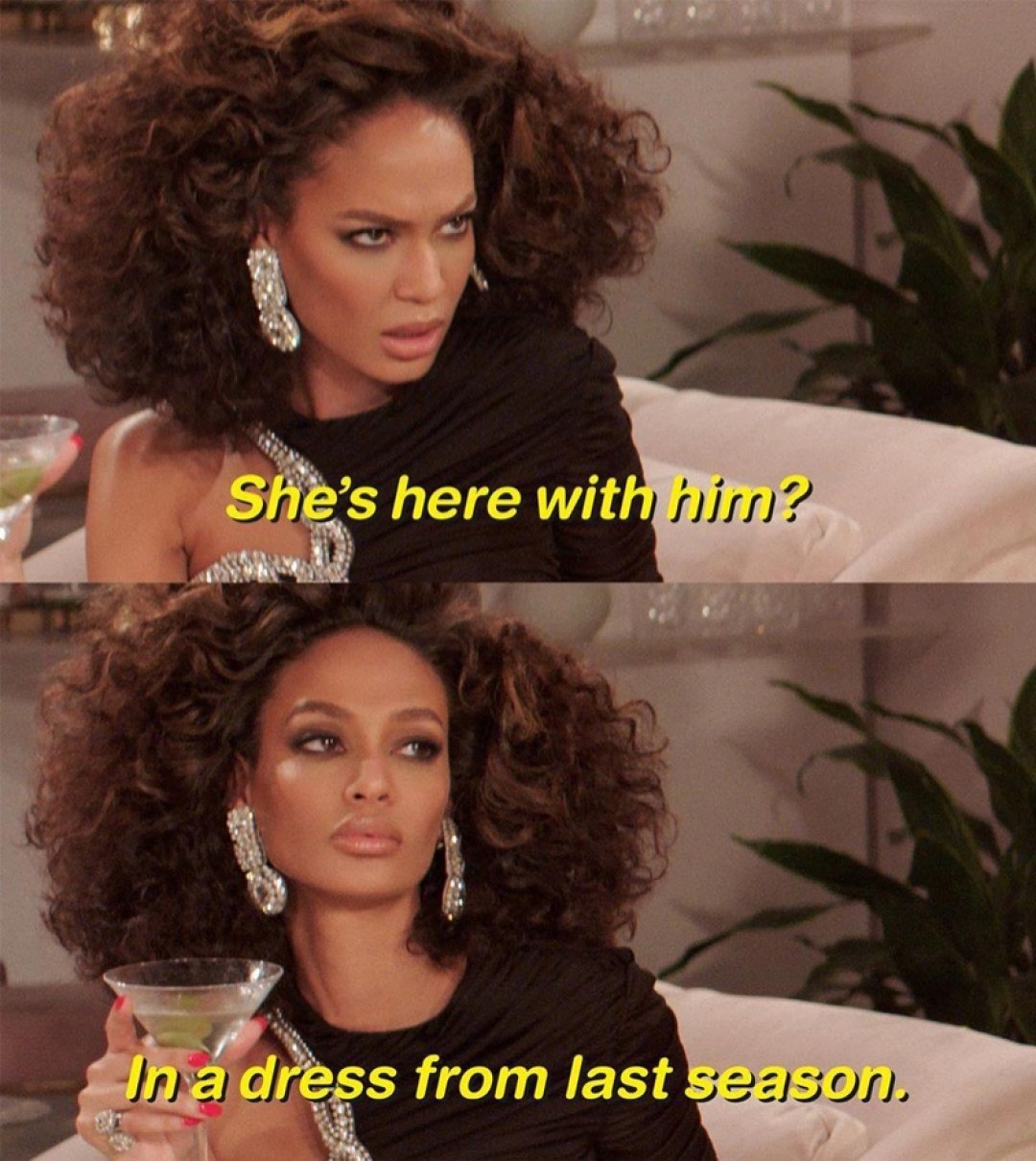 И кажется, это как минимум номинация на «Эмми»: на фото и видео кадрах, разбитых на несколько коротких эпизодов, разворачивается масштабная любовная драма — со сплетнями, изменами и женскими драками. «Она что, с ним? В платье из прошлой коллекции», — спрашивает и тут же успокаивает себя Джоан Смоллс, указывая на наряд Джиджи из долларовых купюр, замешанных с бриллиантовым колье и массивными сережками.