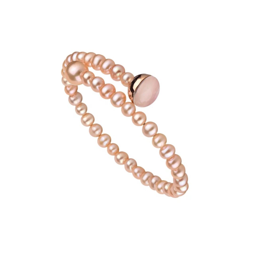Миланский бренд дает серферкор в главном цвете сезона. Пара десятков пудрово-розовых пресноводных жемчужин плюс дуплет из горного хрусталя и кварца нанизаны (причем без видимых зубцов или отверстий — это ноу-хау Mimi!) на пружину разомкнутого браслета Big Bang. Верховные итальянские эксперты по жемчугу, достопочтенное семейство Броджиан, больше чем полвека контролируют качество акойя, которые вплывают в Италию через биржи и аукционы. Поэтому их жемчужины — самые круглые, самые гладкие и всегда выстроены по росту!