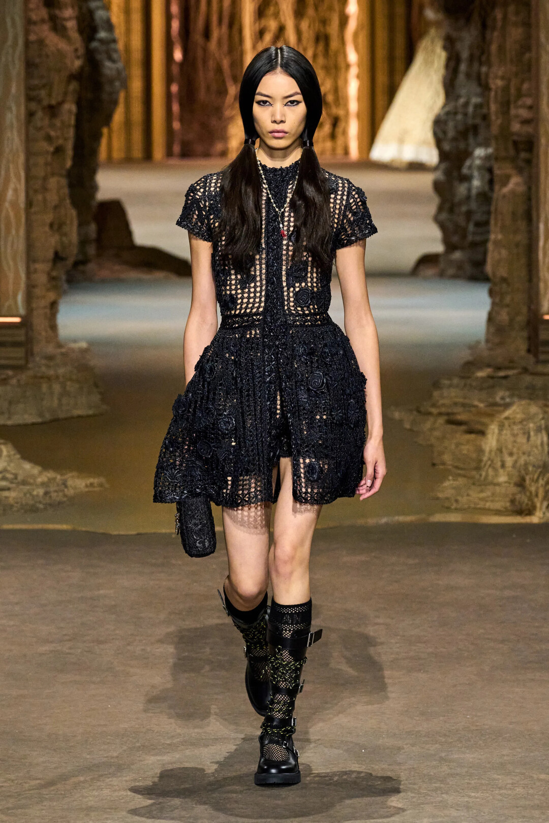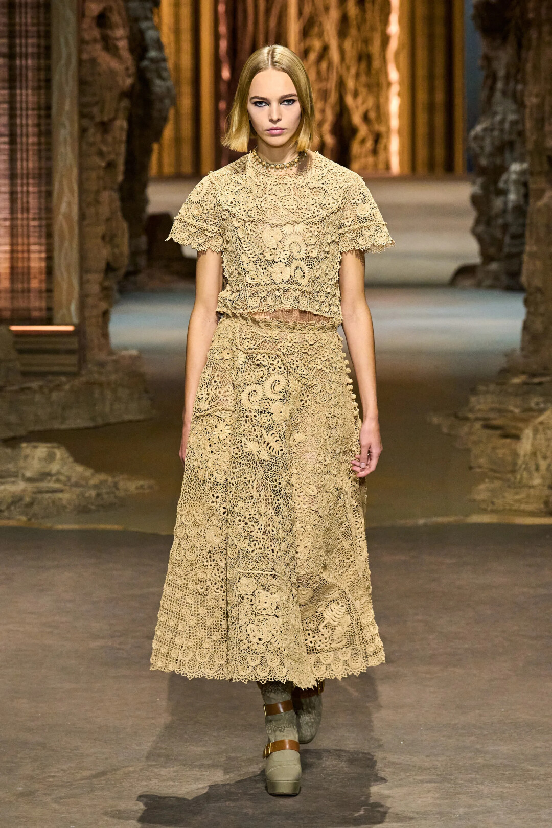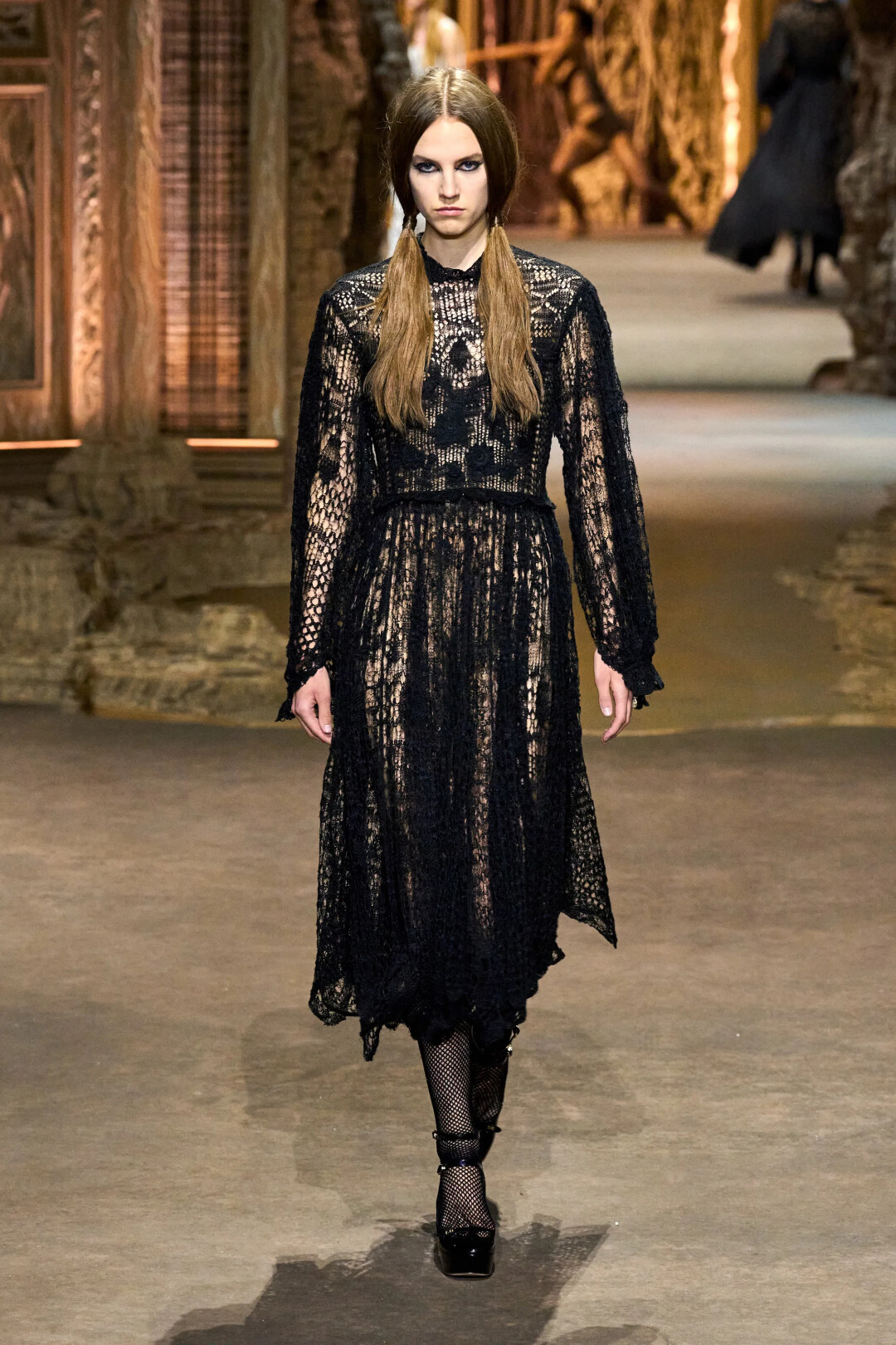 Мария Грация Кьюри, знатная итальянка в Париже, посвятила коллекцию Екатерине Медичи, французской королеве родом из Флоренции. Оценив сходство и обнаружив исторического двойника такого масштаба, мадам Кьюри не поскупилась на декорации: отстроила масштабный картонный грот и выписала танцовщиков. Достала корсеты, кринолины, шитье и панталоны.