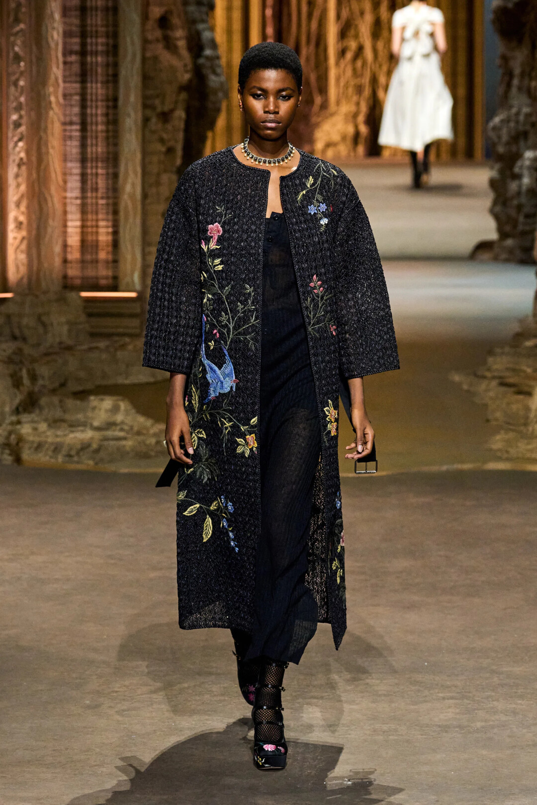 Французская королева, потеряв мужа, не снимала траур до конца дней. Кьюри отвечает черным кружевом из рафии, черным шитьем и черными драпировками в стиле французских штор: вдовий шик актуален как никогда.
