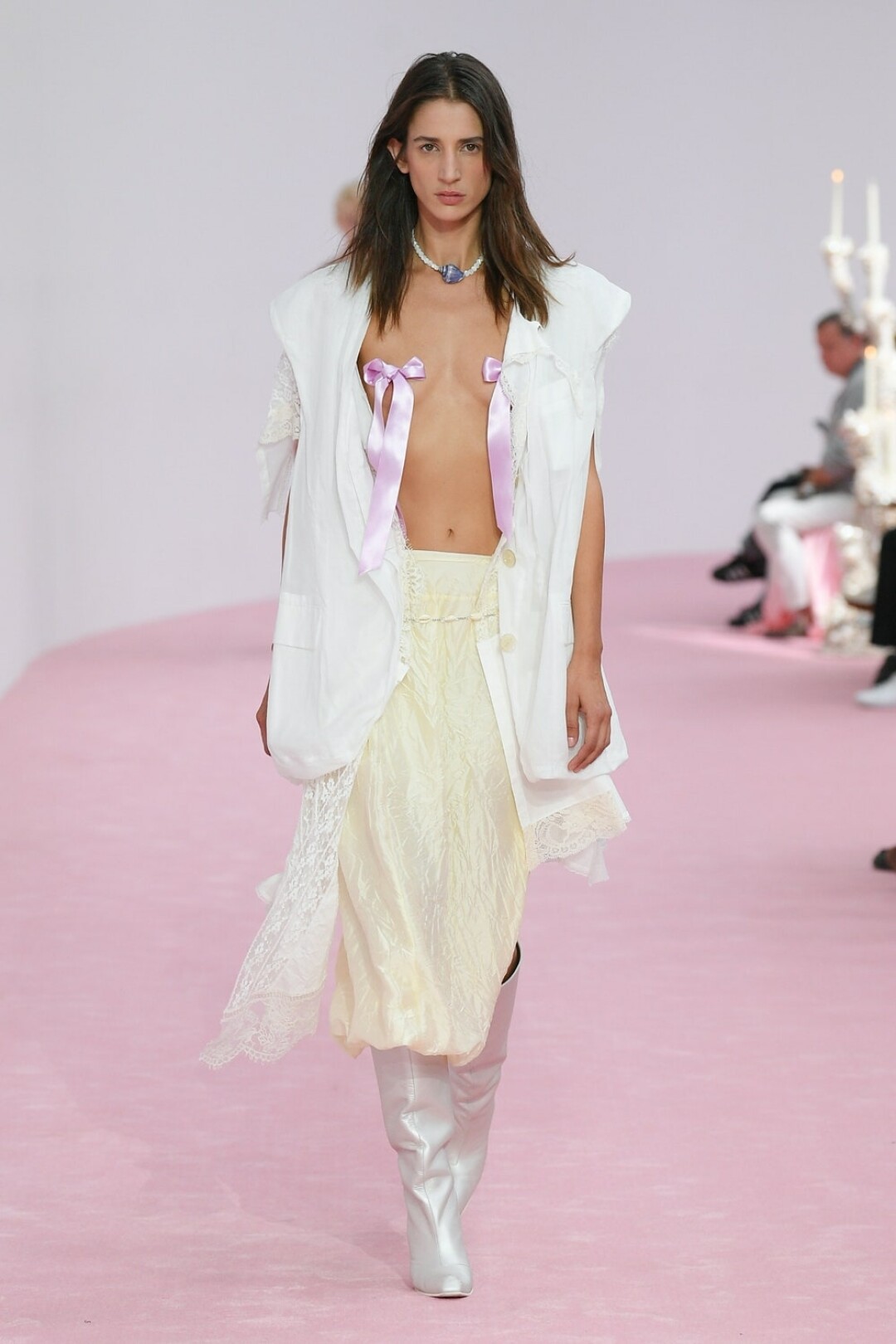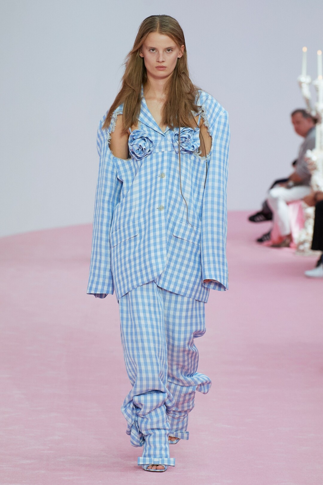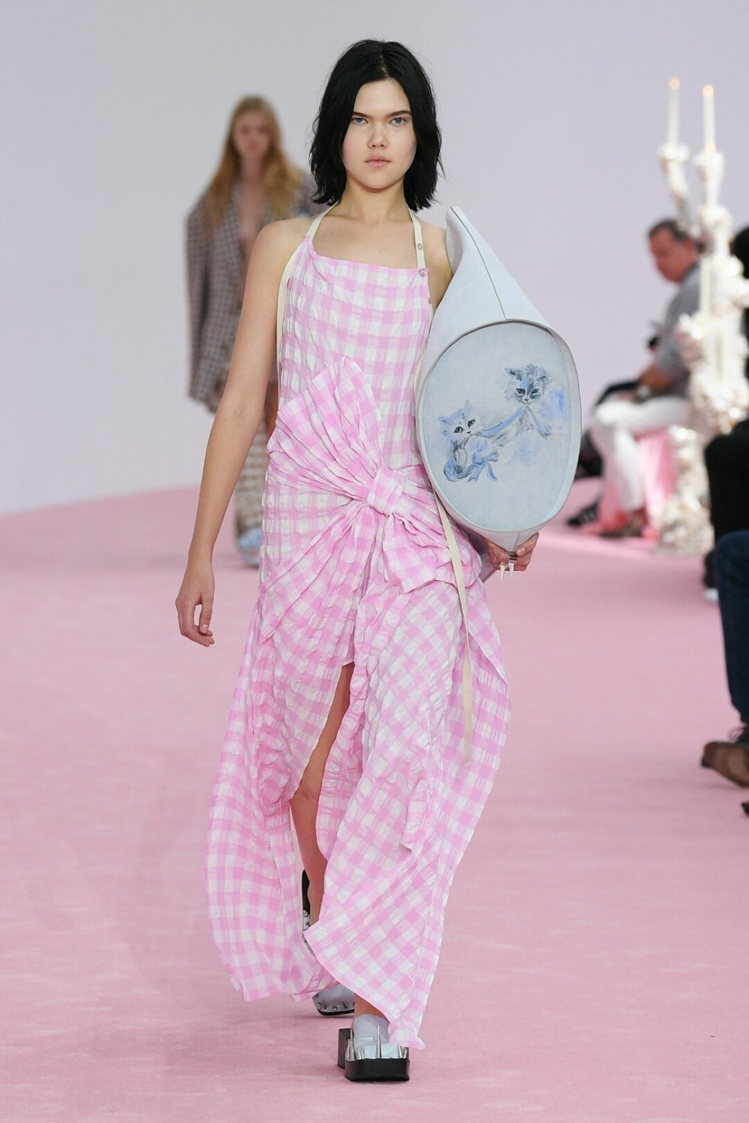 Пространство шоу воссоздавало послесвадебный апокалипсис: Кайли Дженнер расположилась на матрасе, банты с постели молодоженов разместились на сосках одной из моделей, а белый тюль на предполагаемой невесте сложился в помятую подушку. Но и это не убавило очарования и шика, так что в конце показа модели вышли в тотал-луках в клетке виши и платьях с кринолинам, которые не скрывают ничего.