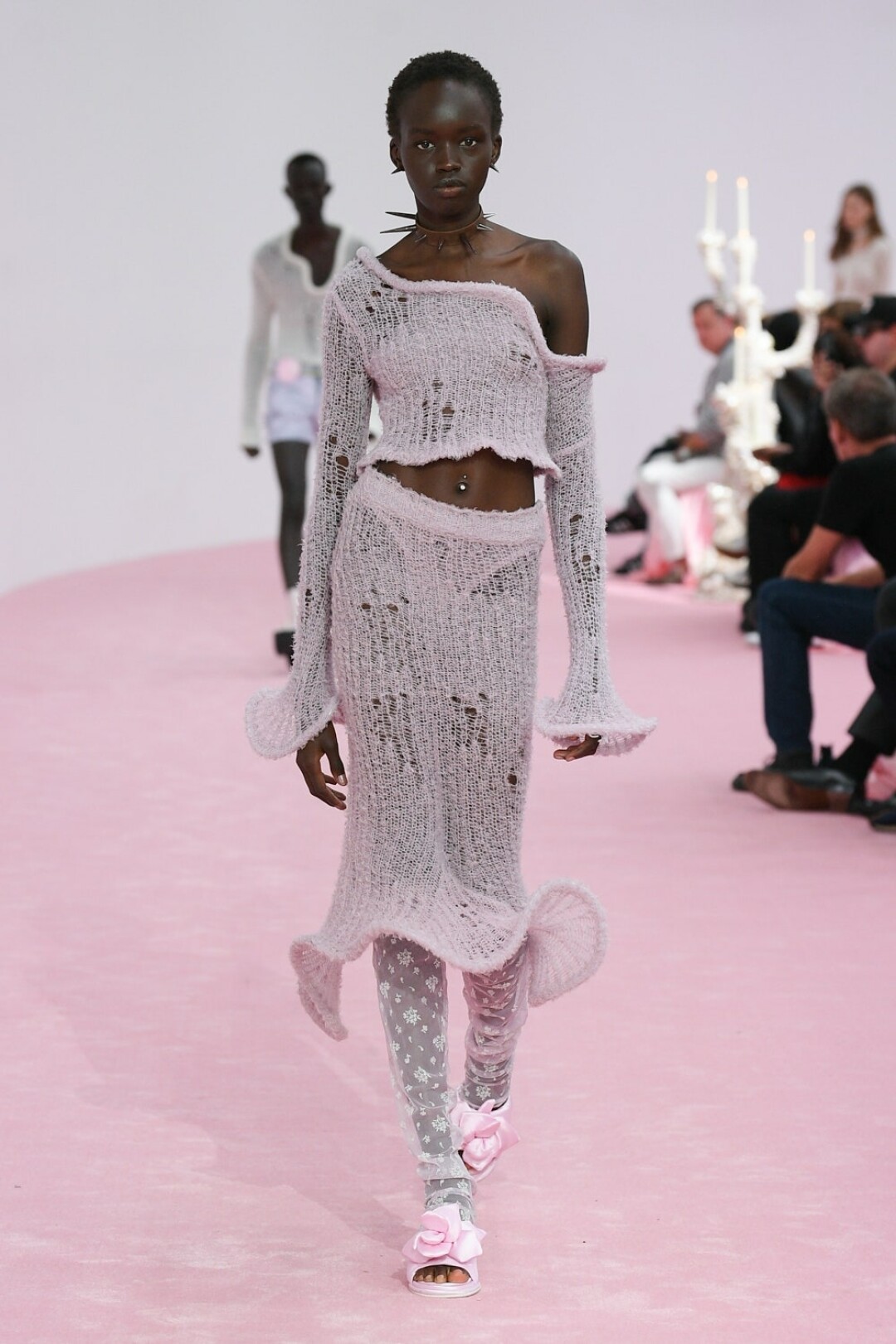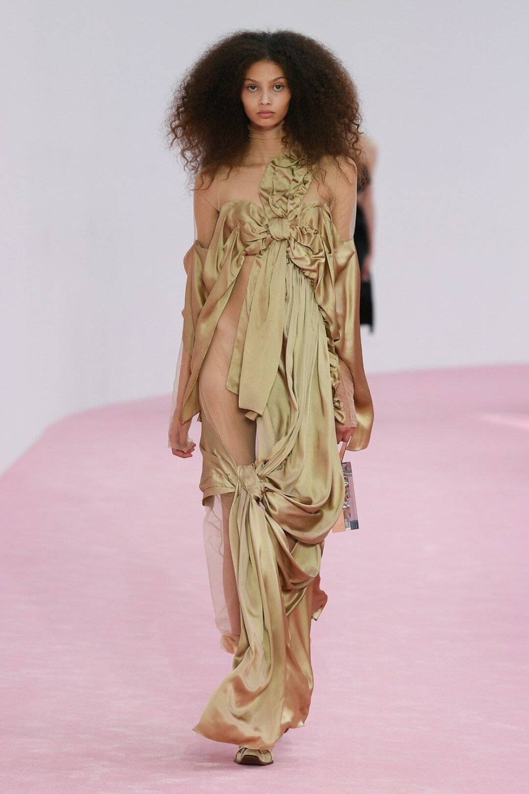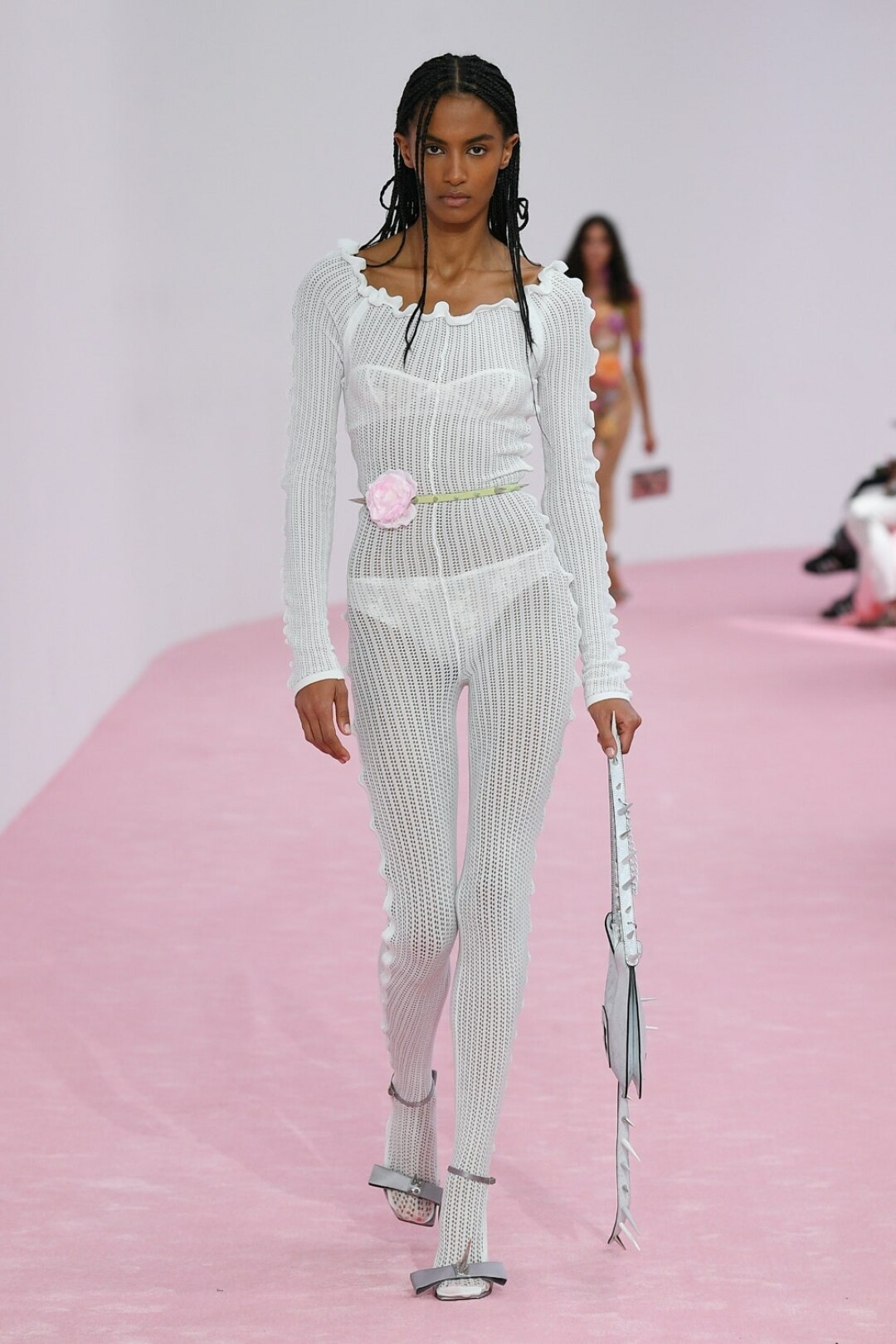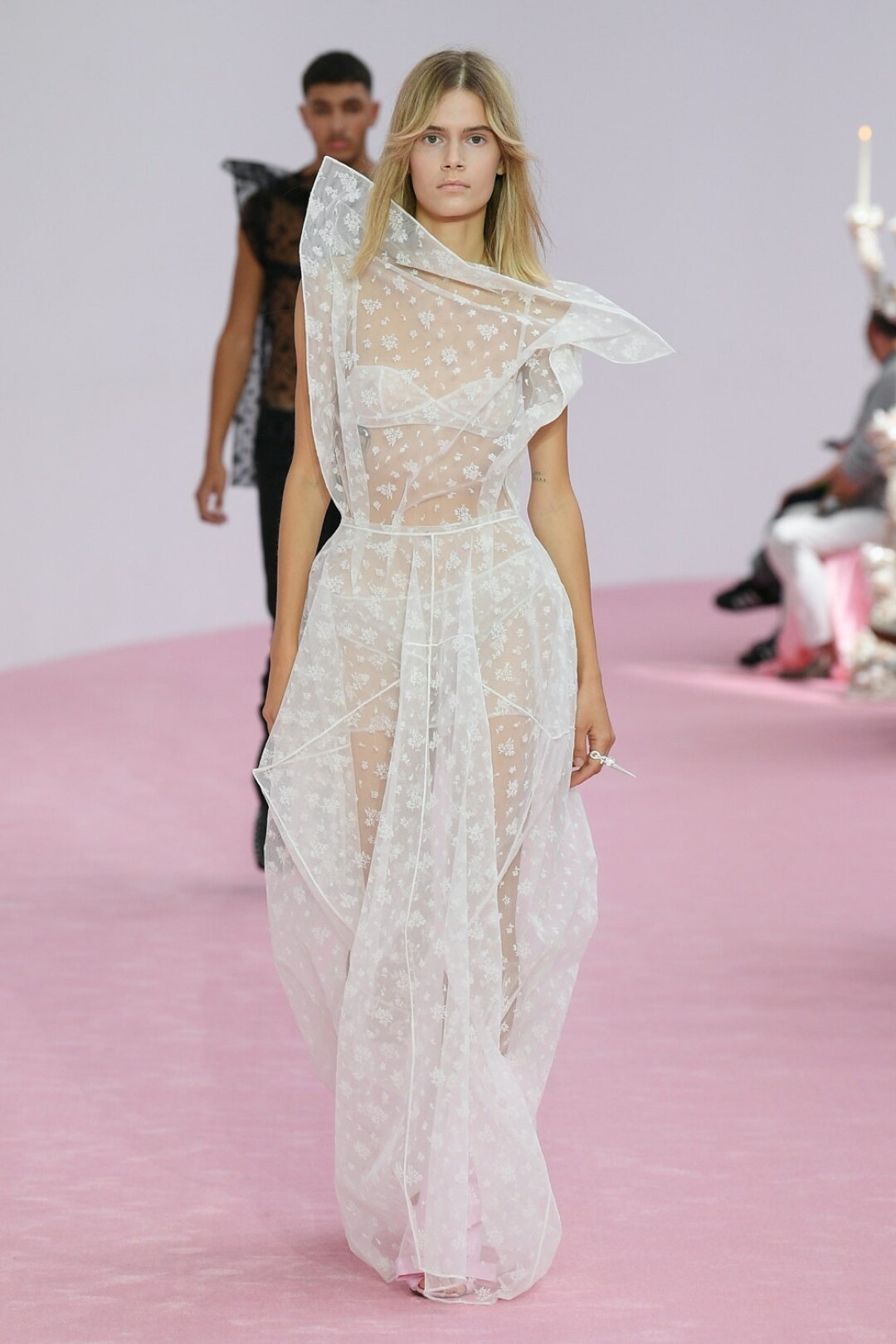 Пространство шоу воссоздавало послесвадебный апокалипсис: Кайли Дженнер расположилась на матрасе, банты с постели молодоженов разместились на сосках одной из моделей, а белый тюль на предполагаемой невесте сложился в помятую подушку. Но и это не убавило очарования и шика, так что в конце показа модели вышли в тотал-луках в клетке виши и платьях с кринолинам, которые не скрывают ничего.