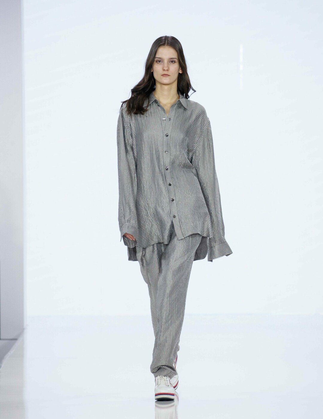 В образах новой коллекции преобладают легкие натуральные ткани: лен, хлопок, шелк и вискоза. В одежде преобладают легкие пастельные тона, дополненные яркими акцентами.