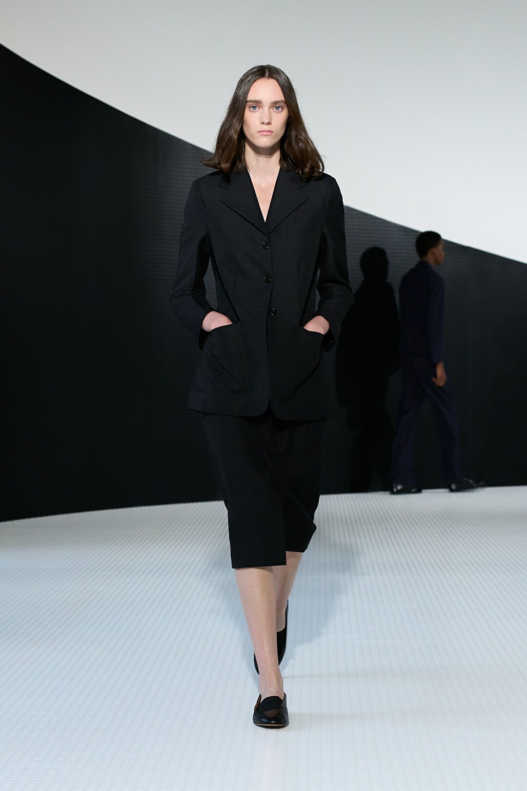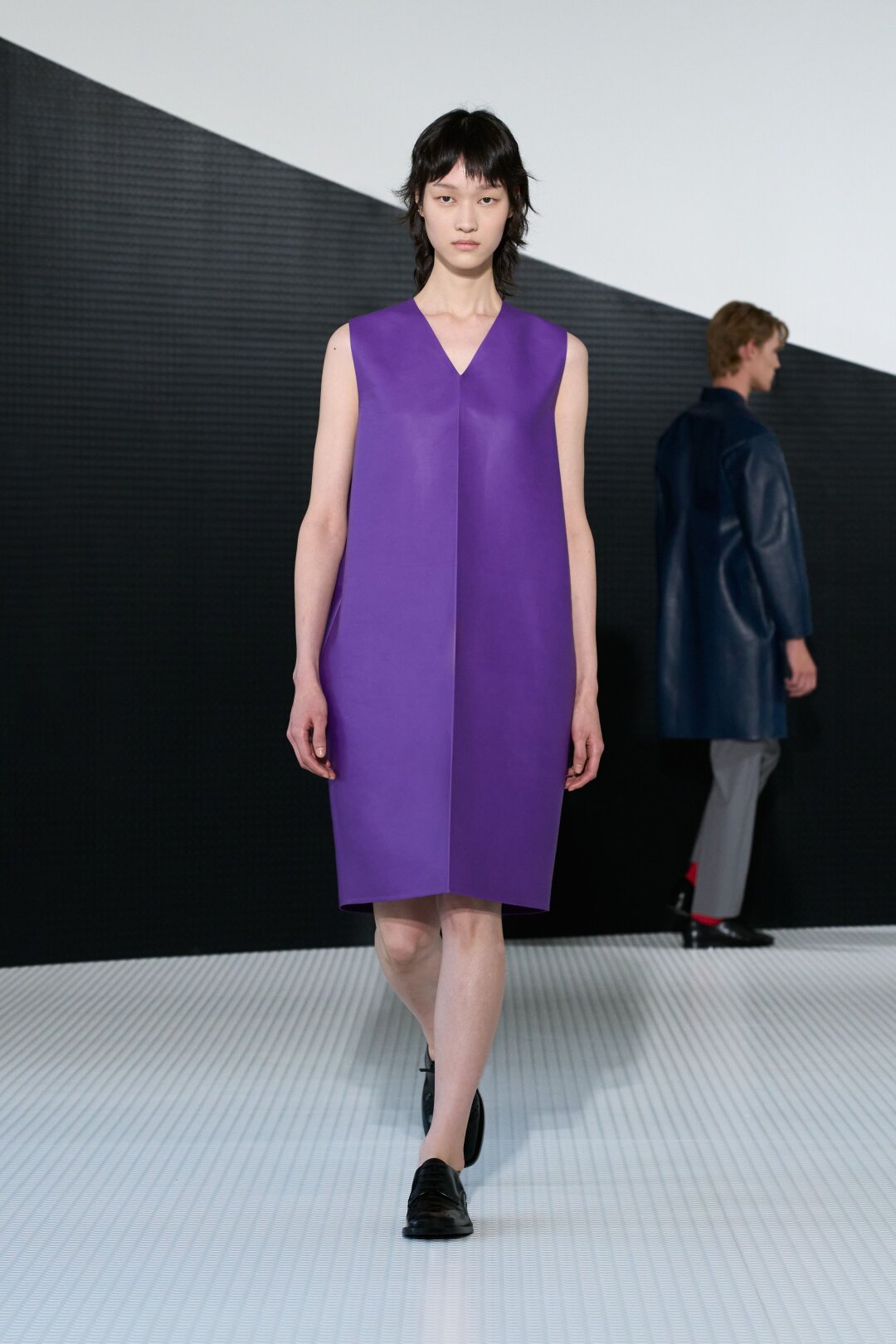 На левой стороне ринга — упреки в сверхминимализме и отсутствии фэшн-харизмы, на правой — похвала за возвращение к истокам (впервые за 8 лет шоу прошло в штаб-квартире бренда на пьяцца Кастелло), геометричные силуэты, фэшн-мастерство (густой восторг — двухстороннее пальто из ультратонкой кожи) и отточенный (почти что мондриановский!) колорблок. Бонус — изобилие арт + фэшн отсылок: от острых разрезов в духе Лучо Фонтана (и немного Рафа Симонса!) до юбочных оммажей автомобильным капотам с полотен «Hoods» Ричарда Принса.