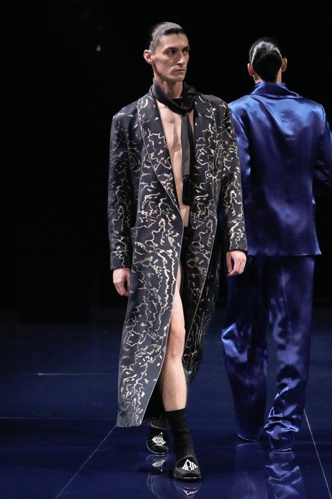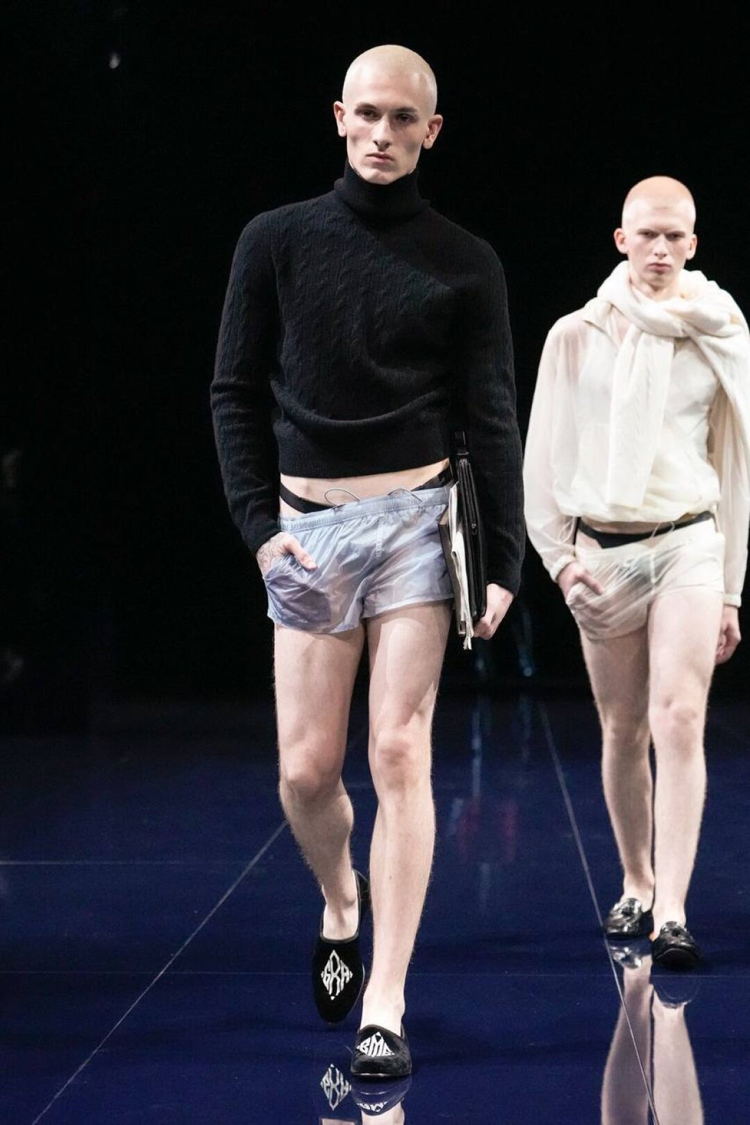Было всё — от полупрозрачных намеков (увидели струящиеся шелковые халаты, хитоноподобные туники очерчивающие грудь и повторяющие контуры тела нюдовые платья, не говоря про расстегнутые до пупа рубашки и экстремальные мини-шорты) до прямолинейный фэшн-заявлений (виднеющиеся из-под шифонового платья-монокини стринги, шортики из невидимого нейлона и комбинации из кружева и немного шелка).