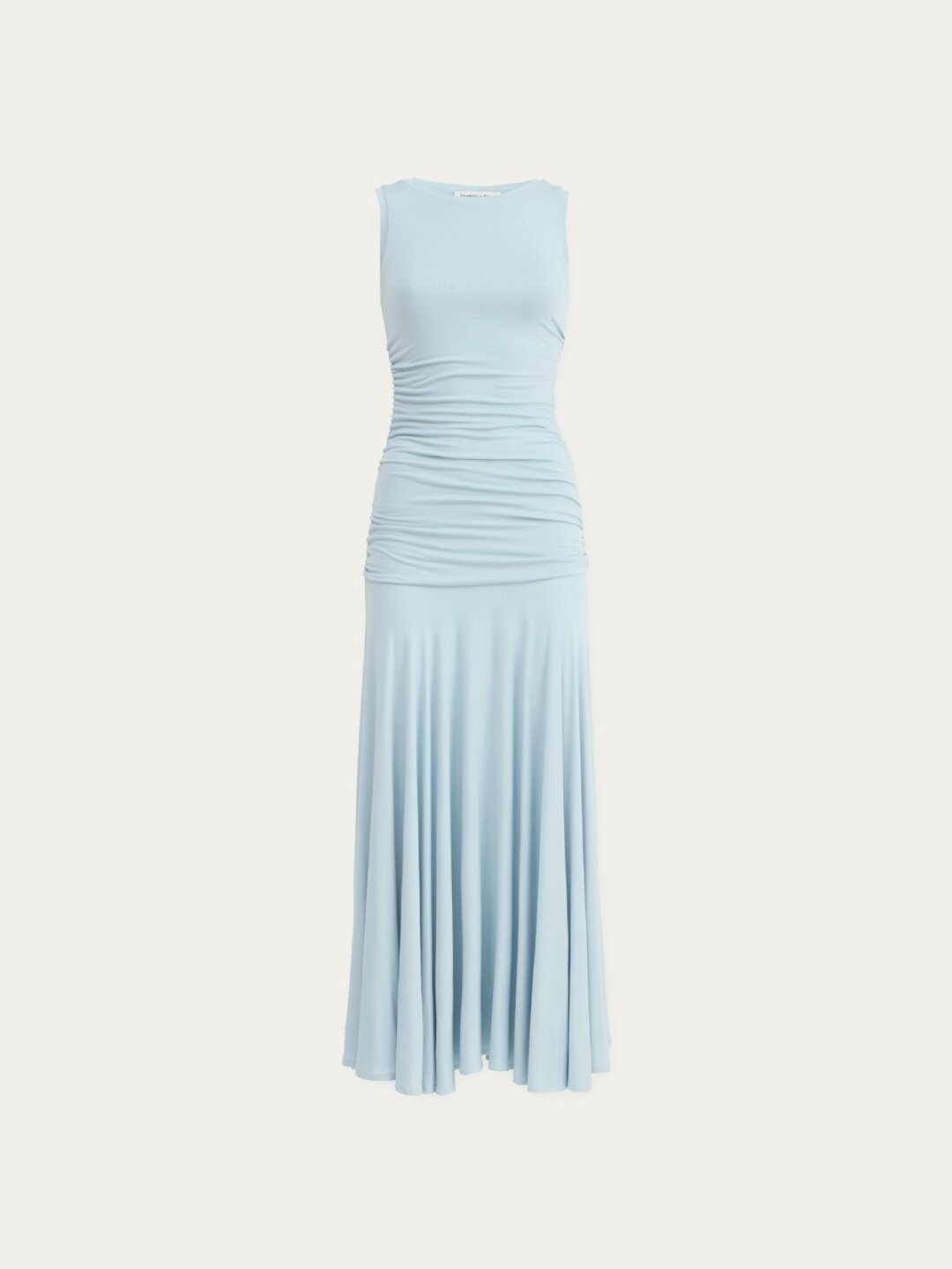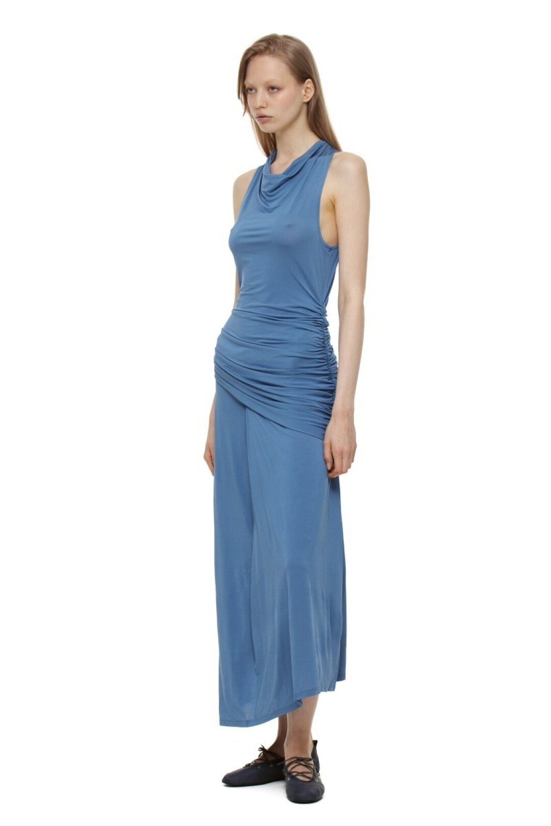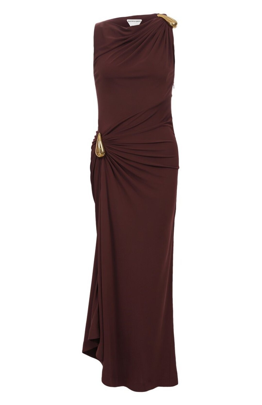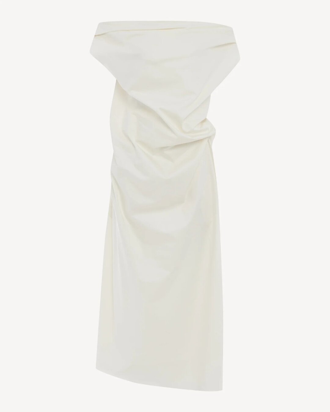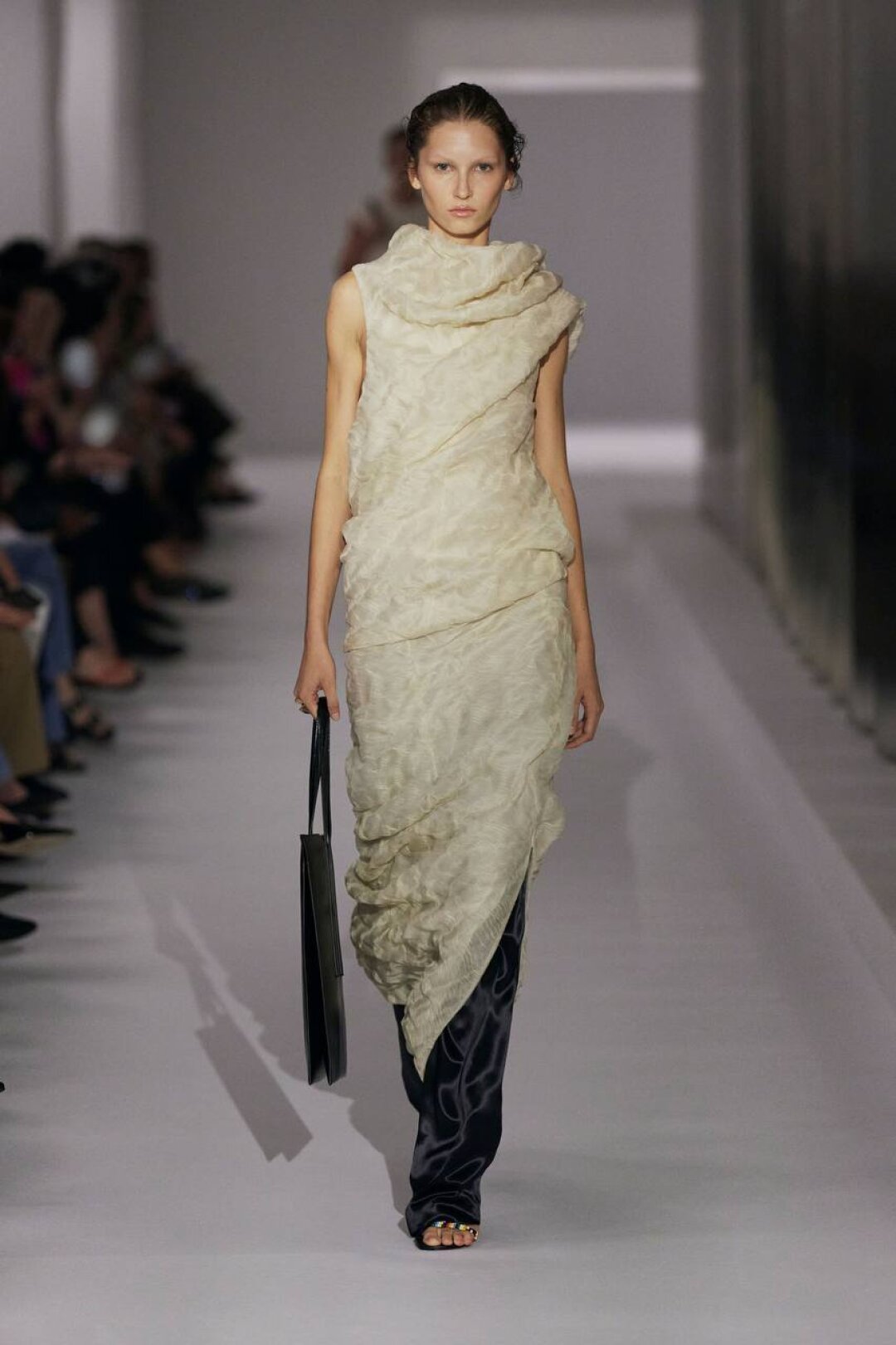 Драпировки — отличный способ визуально смоделировать фигуру (без регистраций, смс и Skims!). Как ни парадоксально, но даже максимально приталенные платья Bottega Veneta, Jacquemus или Kalmanovich сядут как надо за счет складок на ткани, которые визуально меняют пропорции тела, создавая правильный дополнительный объем там, где он нужен.