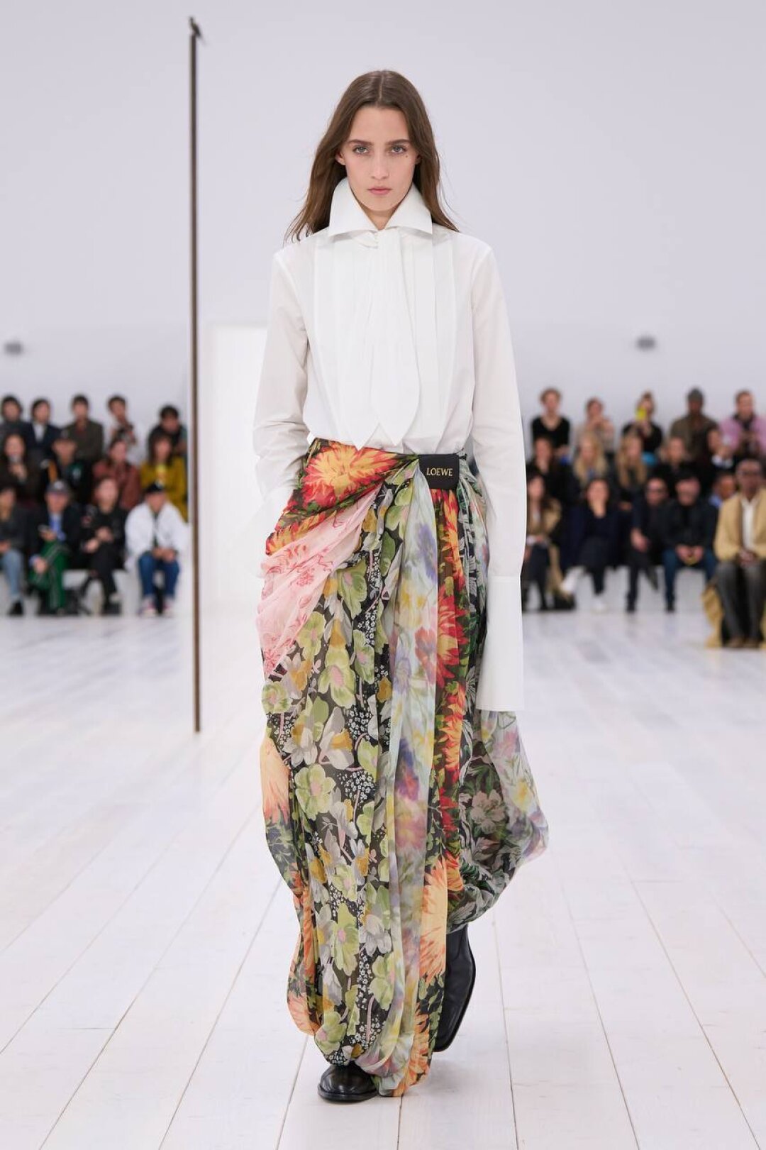 Фиксируем еще одну фэшн-закономерность: пока все в том же Париже шла выставка «Алайя/Гре. Вне моды», отражающая параллели между творчеством главной профи по складкам мадам Гре (в 1930-х создавала платья исключительно методом наколки, подражая струящимся древнегреческим хитонам) и самого большого ее поклонника и коллекционера Аззедина Алайа, на Неделях моды сезона SS'25 тренд на сложносочиненные драпировки становился все заметнее. Так, из отдельных декоративных элементов складки на ткани превратились в самостоятельный способ моделирования и создания одежды — такой, каким пользовалась когда-то мадам Гре. На шоу Chloe за счет драпировок Чемене Камали удалось достичь объема и воздушности, в коллекции Khaite Кэтрин Гольштейн использовала складки для создания массивного, но не грубого ворота и общей асимметрии, а Джонатан Андерсон в Loewe с помощью них собрал полипринтованный шифон в юбку, создавая эффект многослойности.