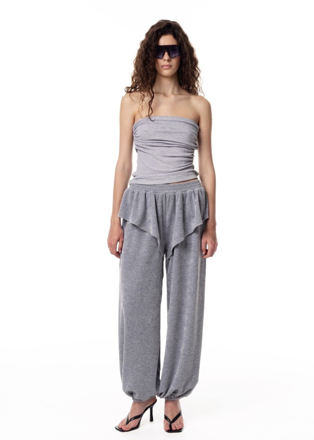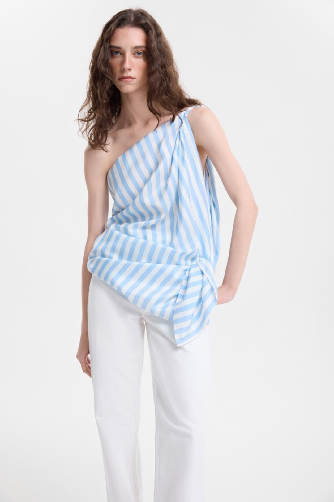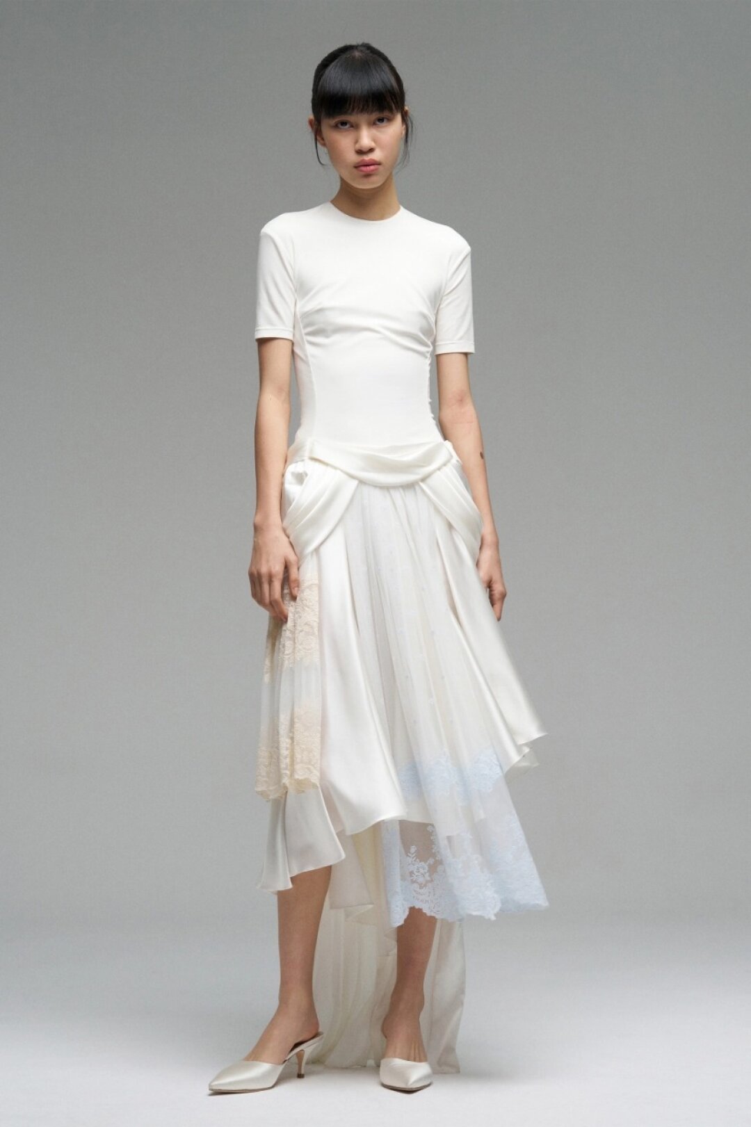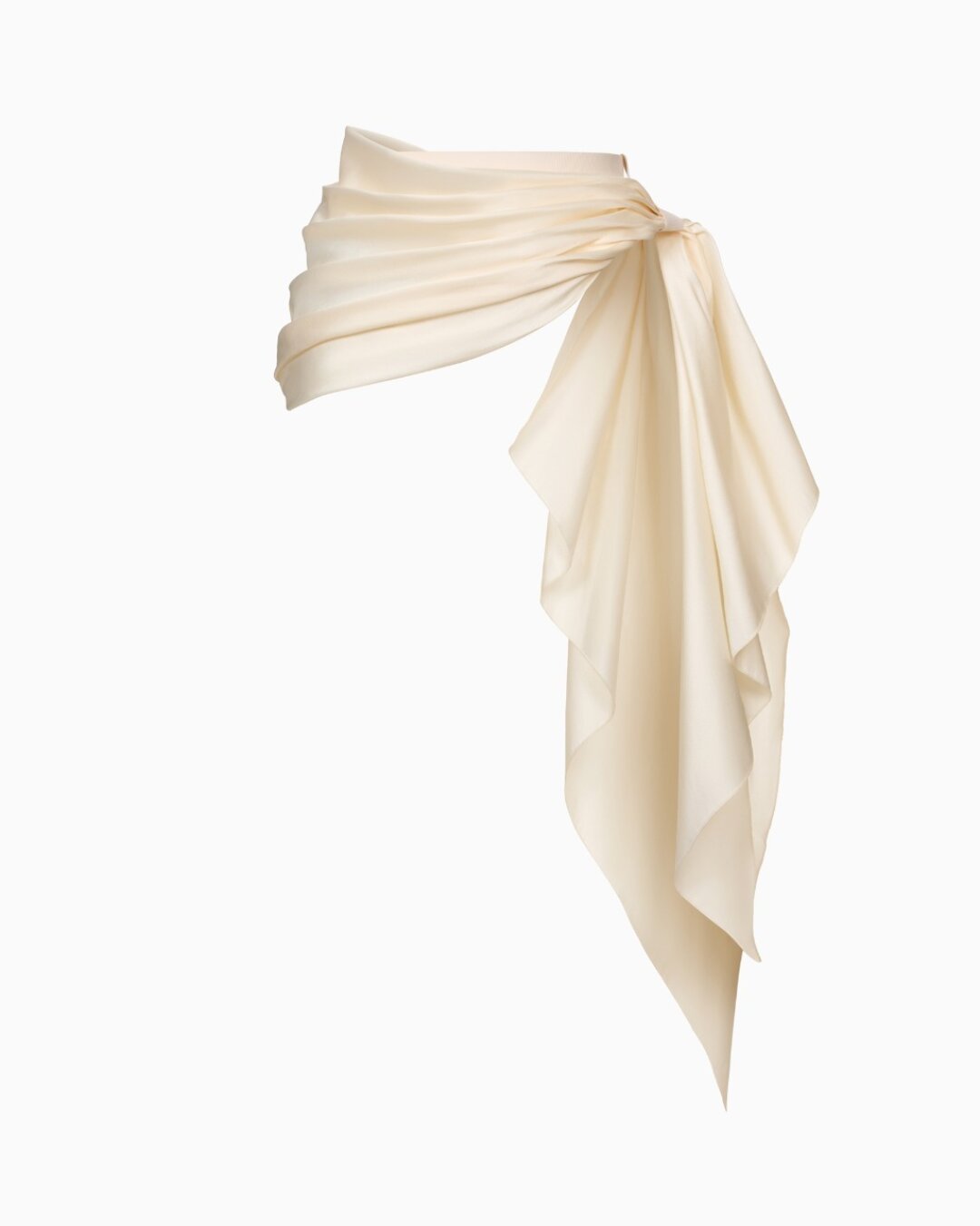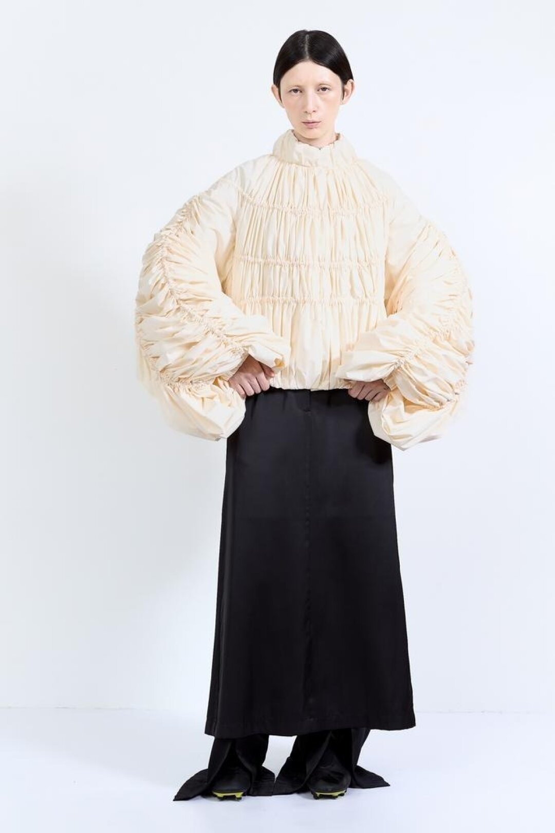 Рекордное количество драпировок зафиксировали в коллекции TheRozie: Расида Лакоба приготовила сеты из всевозможных топов (вам с воротом-халтер, асимметричный или в виде кардигана?) и юбок (от мини до миди) со сборками. А пионерами и главными предсказателями тренда оказались Say No More (делали культовые платья с буфами и интеллектуальные юбки с драпировками до того, как это стало мейнстримом!).