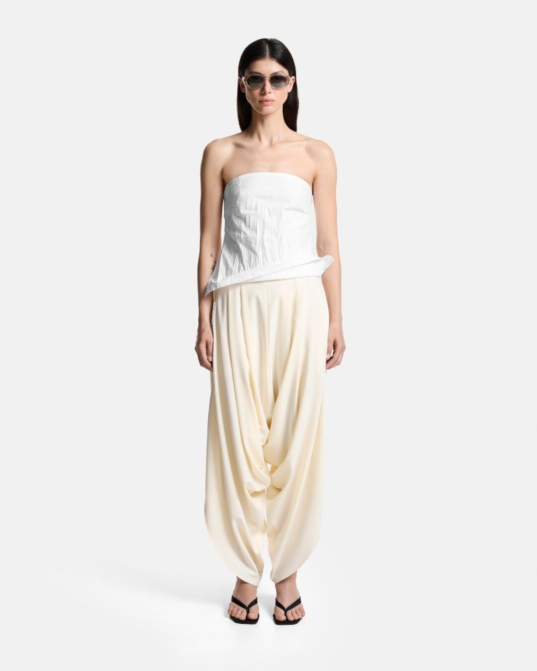 По части белоснежных античных драпировок от мировых фэшн-трендсеттеров не отстают премиум-локалы Agreeg (встретились как-то Артемида и офискор!) и Annuko (если устали от мейнстримных шароваров, примерьте древнегреческие!).