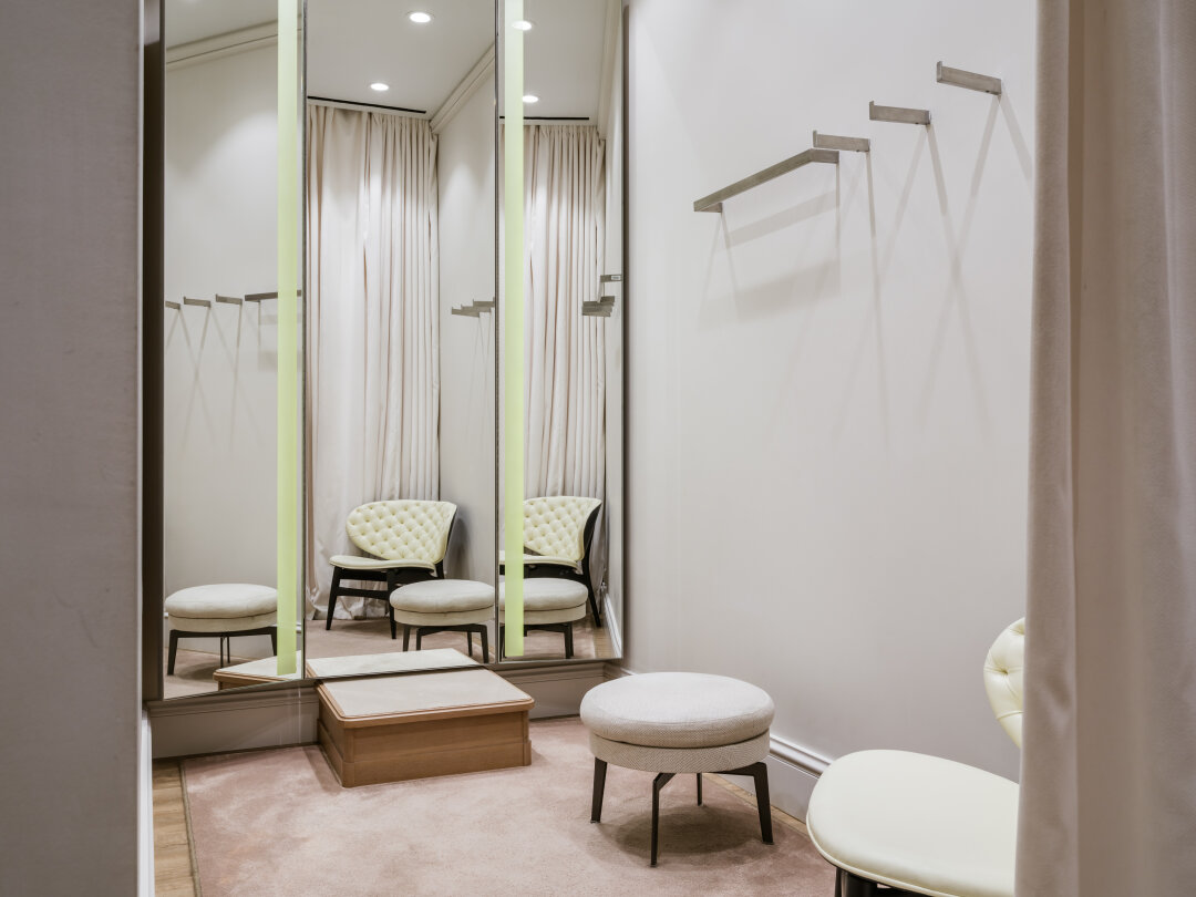 В распоряжении клиентов — просторные примерочные, оснащенные с качественным освещением и ростовыми зеркалами. Это позволяет оценить нюансы кроя и посадку изделий в процессе примерки. Также все клиенты могут воспользоваться услугами профессиональных стилистов, которые помогут составить, дополнить и обыграть образ, чтобы добиться вау-эффекта.