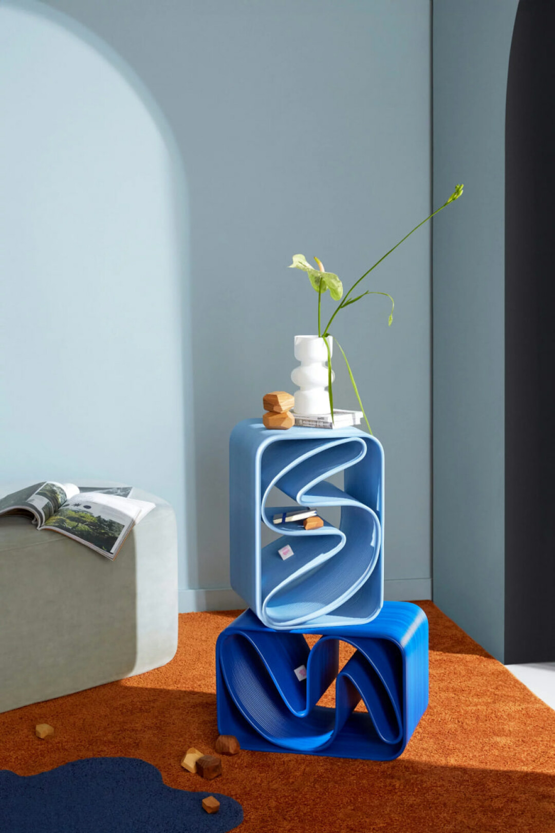 Группа «Самолет» и бренд мебели Eburet создали стол из переработанных материалов. Стол изготовлен из стаканчиков из-под йогурта, а латинская буква S напечатана на 3D-принере.