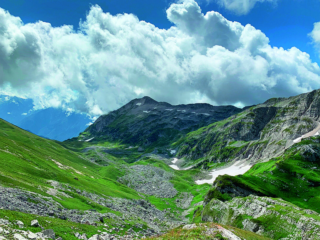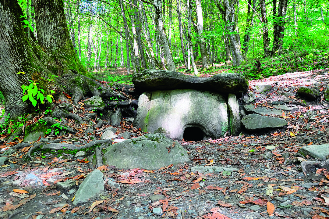 У подножия хребта Ачишхо — древний мегалитический комплекс дольменов, укрытый в зарослях. Их назначение до сих пор остается загадкой: то ли гробницы, то ли ритуальные сооружения. Но атмосфера — завораживающая. Стоишь среди камней, к которым тысячи лет не прикасалась рука человека, и чувствуешь себя маленькой песчинкой в огромном мире