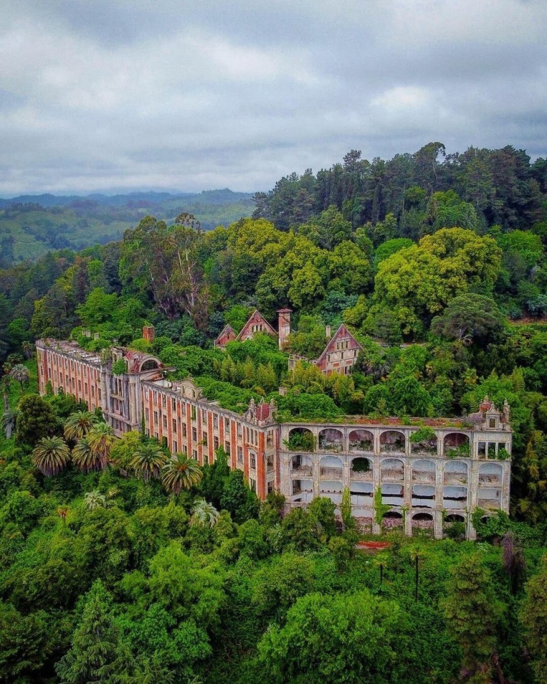 Архитектурный гигант на склонах Гулрыпшского района был построен в 1913 году как санаторий для любимой жены Смецкого. По легенде, здание имело 365 комнат — по одной на каждый день года. Здесь был лифт, сцена, гидролечебница, сад, оранжерея, а врачи рекомендовали супруге менять комнаты ежедневно. И это помогло: она выздоровела.