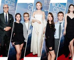 Рузиль Минекаев, Иван Янковский, Федор Бондарчук, Марина Александрова, Леон Кемстач на премьере сериала «Москва слезам не верит» Жоры Крыжовникова
