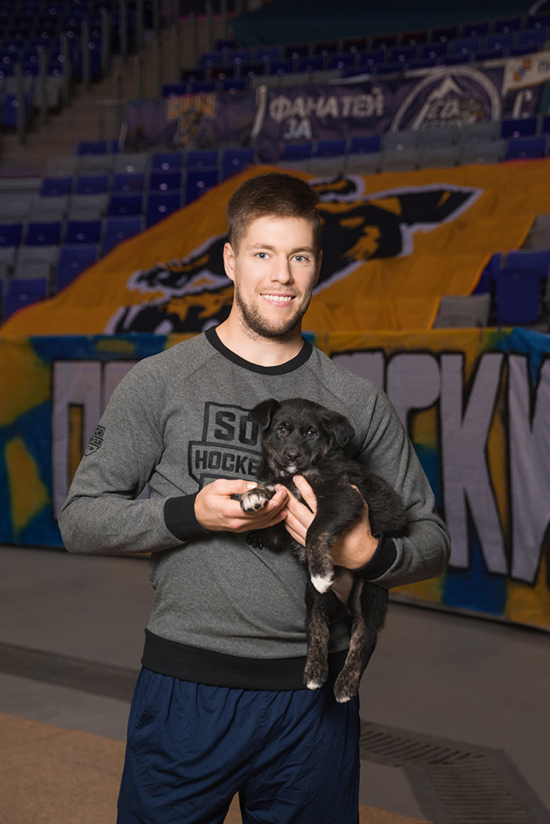 Мы, в свою очередь, не игнорируем проблему, поэтому устроили благотворительный фотопроект совместно с командой ХК «Сочи». Игроки делятся детскими воспоминаниями и отвечают на вопросы, связанными с животными, а заодно позируют с собаками, которые ищут дом.