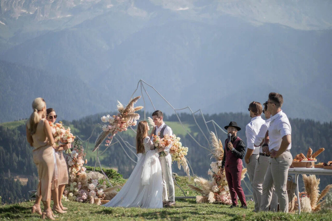На курорте «Роза Хутор» невероятные природные пейзажи становятся идеальным фоном для свадебного торжества. Здесь представлены разнообразные площадки под открытым небом, каждая из которых может сделать событие незабываемым.