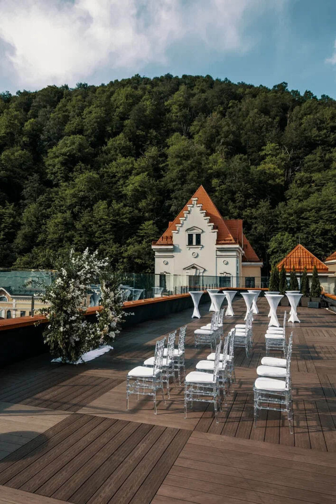 Для выездной регистрации и празднования под открытым небом идеально подойдет летняя терраса.