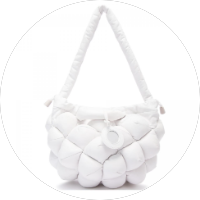 Белая 3-D-сумка от VIC MATIE’ выполнена из кожи наппа с набивкой, создающей эффект объема. В комплекте идет съемный ремень, а также кожаная подвеска с зеркалом.