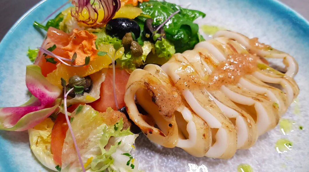 САЛАТ С КАЛЬМАРОМ-ГРИЛЬ И ТОМАТНОЙ САЛЬСОЙ