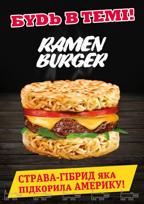 Обучаясь готовить рамен на родине предков, сын японских эмигрантов Кейзо Шимамото случайно обнаружил похожее блюдо — сэндвич с раменом и свининой. Шимамото переосмыслил его и сделал в виде бургера, выразив тем самым свою любовь и к японской, и к американской кухне. Повар прославился на всю Америку: несмотря на то, что в 2013 году одно из американских СМИ охарактеризовало блюдо как «причудливую еду на миллисекунду», рамен-бургеры продолжают пользоваться популярностью до сих пор.