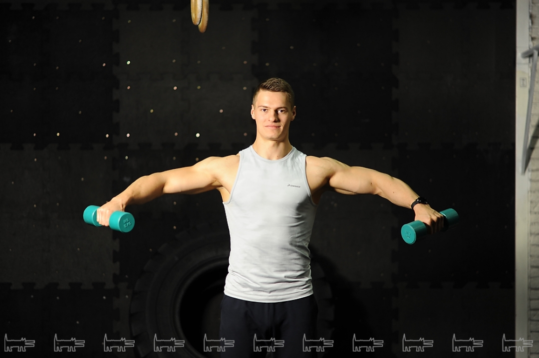 Упражнение, которое спасет дельтовидную мышцу: вооружившись гантелями, необходимо выполнять подъемы рук через стороны, восходящее движение делается на выдохе. Крайнее положение – гантели чуть выше уровня линии плеч. Важно опускать гантели плавно. Вес снарядов выбирается индивидуально: для девушек подойдут небольшие – до трех килограммов, мужчины могут орудовать