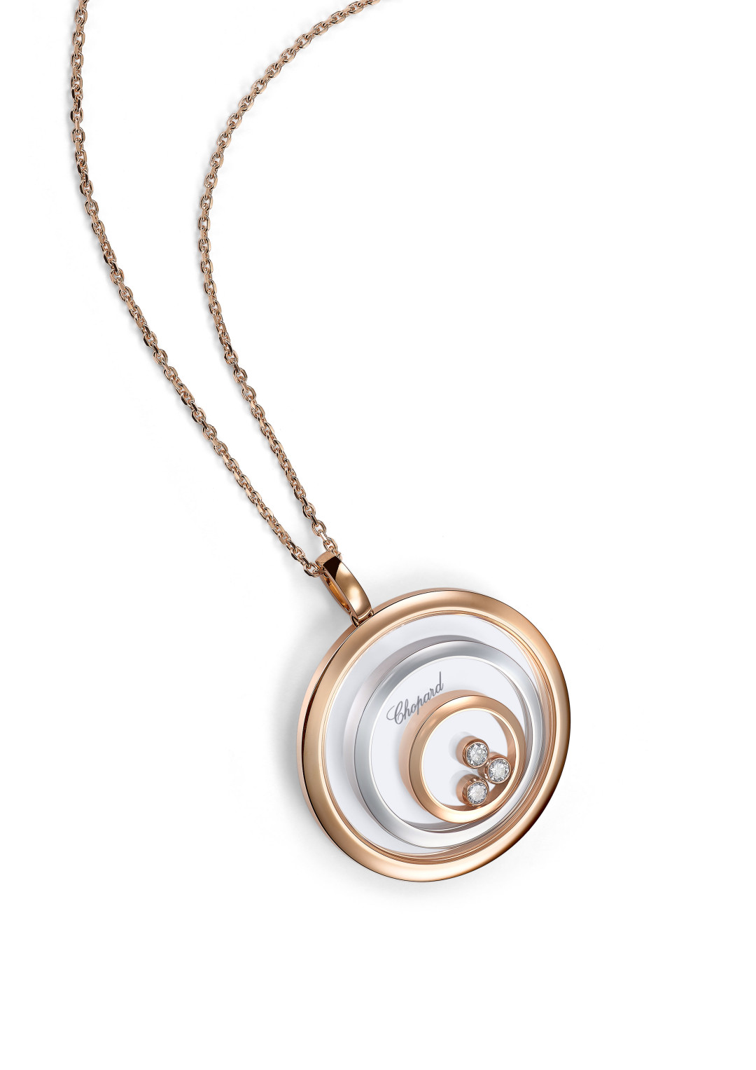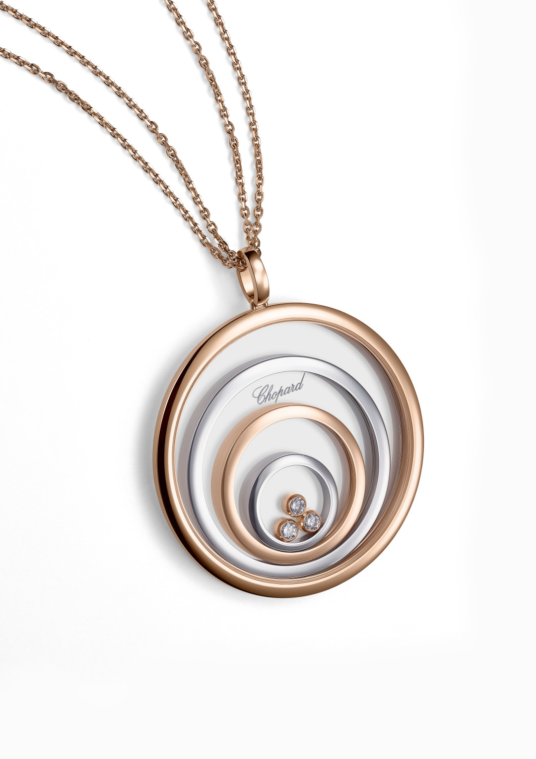 Главный символ коллекции — круг, который во многих культурах является символом женственности. Плавающие бриллианты Chopard еще в начале 2000 годов легли в основу ювелирной коллекции Happy Spirit. Сегодня они предстают в новой интерпретации, более лаконичной и легкой. Один или несколько плавающих бриллиантов – в зависимости от размера – кружатся в обрамлении нескольких вложенных друг в друга кругов. Их непрерывное движение – словно рассказ о бурной, радостной и кипучей жизни.