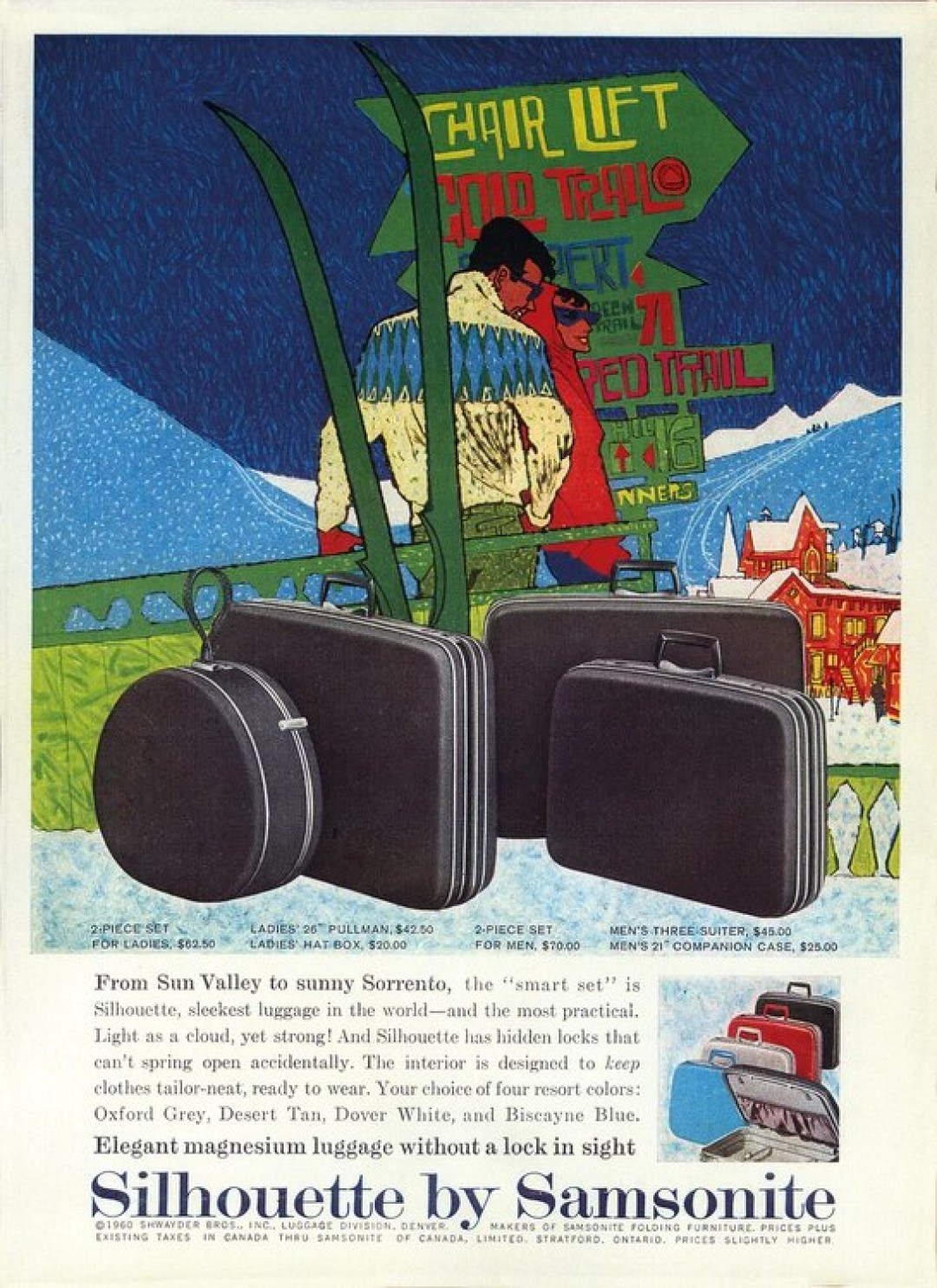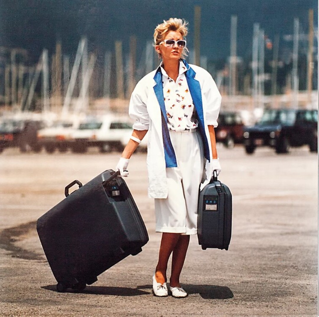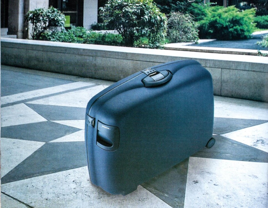 Первый чемодан на колесах, который перевернул мир багажа в далеком 1974 году – чемоданы поднялись с земли и стали стоять вертикально. «На ходу с путешествующим поколением» – гласил первоначальный рекламный слоган, адресованный новому поколению часто летающих пассажиров.