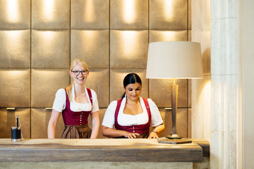 Традиционный народный костюм в качестве формы для сотрудников был выбран и в AlthoffSeehotel Überfahrt. Молодая мюнхенская семейная компания AmselFashion разработала специально для отеля линию одежды в баварском стиле. Женское платье «дриндль», мужские брюки и желеты, аксессуары и детали образа – все продумано до мелочей и создано вручную из 100% натуральных материалов. Коллекция одежды получила название RoyalBlue, что так точно подчеркивает индивидуальность этого курорта, расположенного на берегу озера Тегернзе.