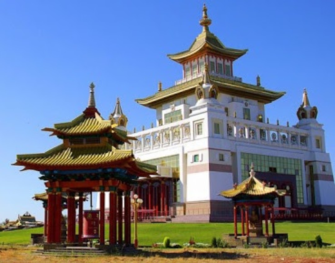 Путь ведет через Калмыкию и ее столицу. В центре Элисты делаем остановку у крупнейшего буддийского храма республики. В новом центральном хуруле «Золотая обитель Будды Шакьямуни» расположена высочайшая в Европе статуя Будды, два молитвенных зала и резиденция Далай-ламы. Здание окружают семнадцать пагод со статуями великих буддийских учителей монастыря Наланда. Храм действующий, где ежедневно совершаются молебны, ритуалы и праздничные богослужения.