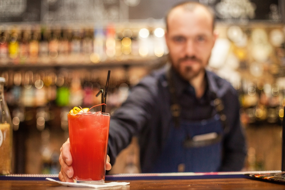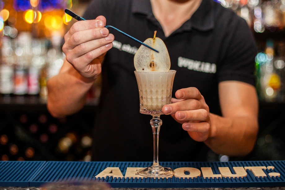 Влад Соколенко: По пути из Кисловодска в родную обитель – Пятигорск – мы успели слегка проветриться и скинуть с себя появляющийся груз опьянения после первой на КМВ барной точки. Без лишних действий вошли в бар и сразу же окунулись в его непередаваемую атмосферу. Ни я, ни Лена, ни разу не были в настоящих английских пабах, но после визита в «Бристоль», названный, кстати, в честь портового города на севере Британии, можем смело считать, что были. Вопреки стереотипам, здесь не было грузных бородатых бруталов, шлепающих увесистыми пинтами по грубым деревянным столам, хотя последние имеются. Подошли к бармену, Александру Лахину, который уже деловито постукивал шейкером. И тут понеслась. -
