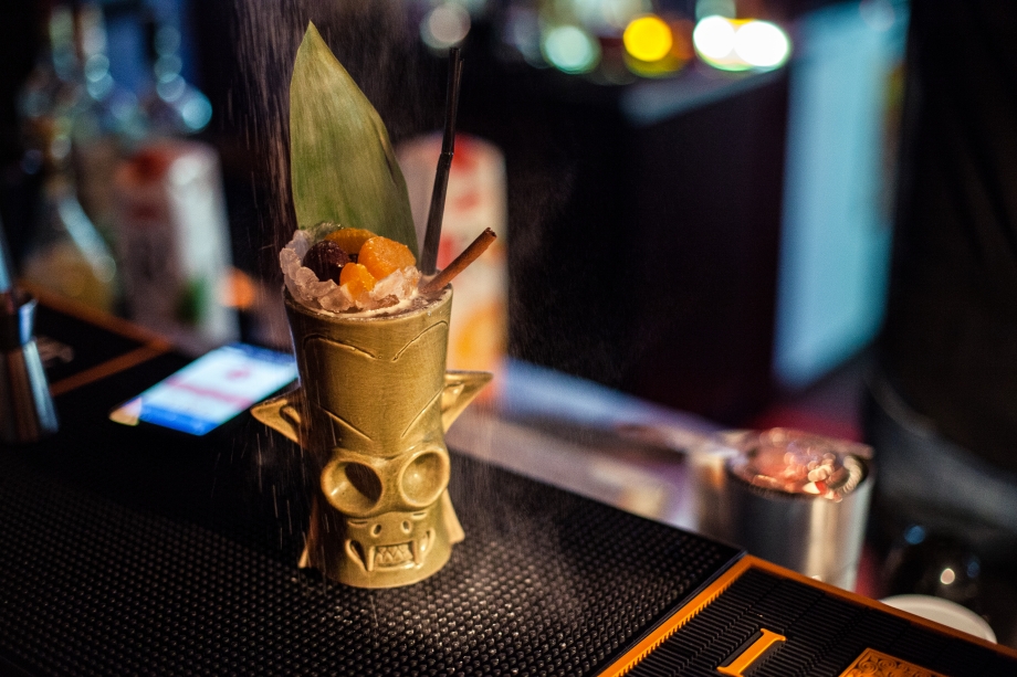 «Тики» вызывает то самое чувство, когда ты пришел один, но можешь поговорить с бокалом. Особенность, конечно же, в подаче. Собственно, словом «тики» изображают идолов, похожих на каменных истуканов, в которых и наливают алкоголь. Диковинка этих коктейлей не в количестве градусных напитков, а в их разнообразии (от пяти до десяти). Пьется при этом очень легко, и, закрывая глаза, можно мысленно трансгрессировать в Доминикану, например, куда-нибудь к берегу моря или в бассейн – лично для меня предпочтительнее последний вариант. -