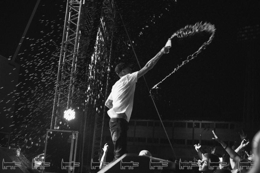 Зарядившись любовью и энергетикой от девчонок из «Серебра», публика затаилась в ожидании последнего выступающего – им стал адепт хип-хоп культуры рэпер Скруджи. Ему удалось не только заставить весь стадион подпевать и включать фонарики на мобильных, но и просить артиста «дать попить». Музыкант в просьбах не отказывал: щедро поливал публику водой, а более удачливым от него достались целые бутылки.