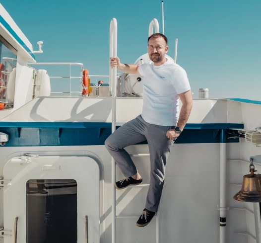 Его компания «Нева Тревел» спроектировала и вывела на линию Петербург — Кронштадт сверхновые прогулочные суда — скоростные катамараны проекта «Котлин», построенные на Средне-Невском заводе: сейчас это самый быстрый способ домчать от Эрмитажа до «Острова фортов».