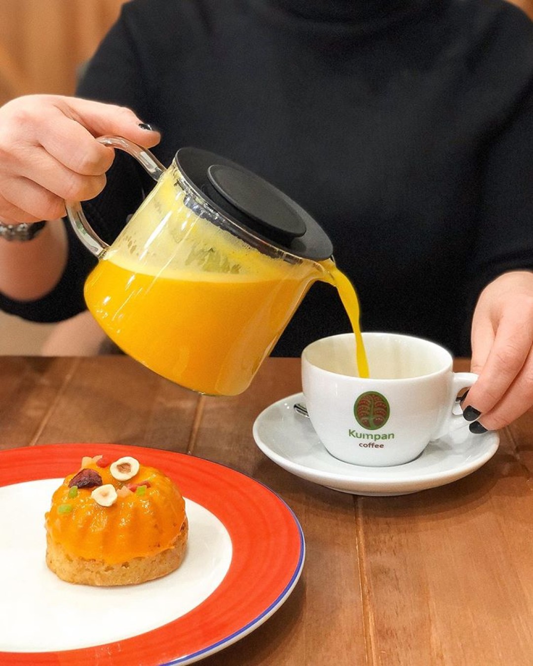 От нового зимнего меню этого заведения веет настоящим домашним теплом. В кафе угощают вкусными чаями с фейхоа, базиликом и лимоном или с манго, апельсином и розмарином. Традиционный глинтвейн в заведениях на ул. М. Карима, Ленина и Цюрупы делают алкогольным и безалкогольным. А еще в список зимних напитков от Kumpan входят раф «Розмарин клубника», «Имбирный пряник» и латте «Соленая карамель».