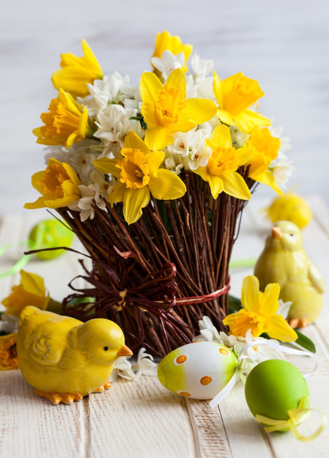 Вспомним, что цветы не только прекрасны сами по себе, но и наделены сакральным смыслом. Нарциссы символизируют очищающий колокольный звон, гиацинты вырастали там, куда падали слезы Пресвятой Девы, тюльпаны олицетворяют весеннее возрождение природы, а розы и гвоздики – это вечные атрибуты Христа. Украшая благородными цветочными композициями пасхальный стол можно создать потрясающую атмосферу чуда, заодно надышаться всласть нежными весенними ароматами, по которым мы все так скучаем, сидя дома.