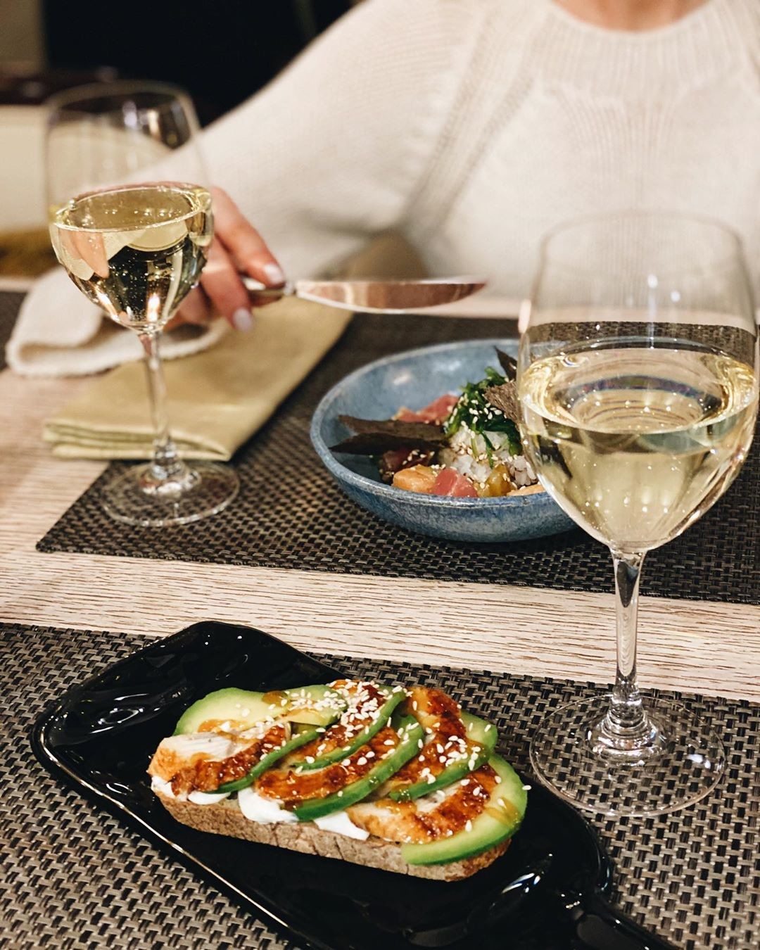 В меню винного бара внушительный раздел с закусками. В нем мы отыскали три вида брускетт. Фаворитом выбран вариант с копченым угрем, авокадо и сливочным сыром – отличное дополнение к сухому белому. Этот нежный вкус вы точно долго не забудете!